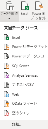 ホームタブの「データを取得」を押下し最下部の「詳細…」を選ぶ.