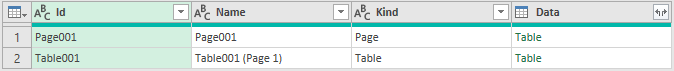 読み込まれたのは 2 行のみだが,Id 列をよく見ると Page001 および Table001 とある.ここで必要なのはテーブルの方である.