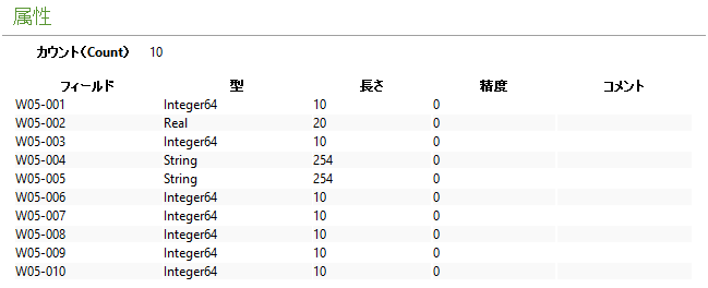 また,他の県ではフィールド名は W05_001 というような半角英数字で表現されているが,北海道だけは日本語で表現されている.