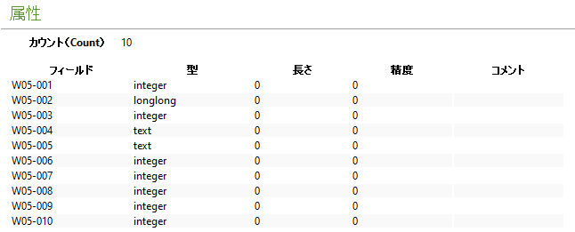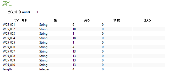とりあえず,QGIS のレイヤプロパティから属性テーブルの構造を列記してみた.