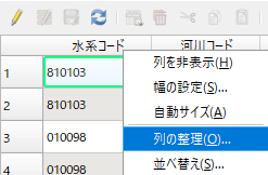 属性テーブルの列名を右クリックして「列の整理…」と進む.