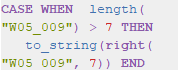 CASE WHEN length("W05_009") > 7 THEN to_string(right("W05_009", 7)) END