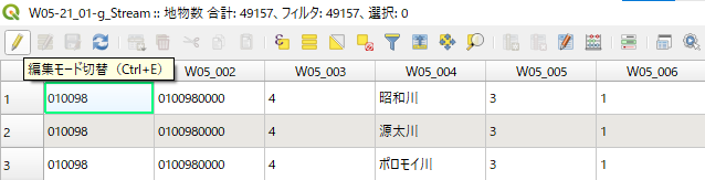 国土交通省の国土数値情報の河川データには不備がある.テーブル構造の不一致についてはテーブル構造の修正には「属性のリファクタリング」で修正方法を述べた.今回は属性テーブルの値を修正する.