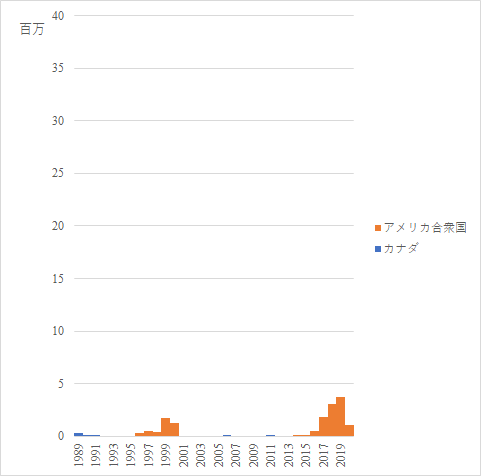 北米の国別輸入元の推移