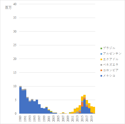 中南米ではメキシコの存在感が大きかったが,最近ではエクアドルの存在感が増している.
