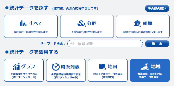 eStatトップページの「地域」をクリックする.