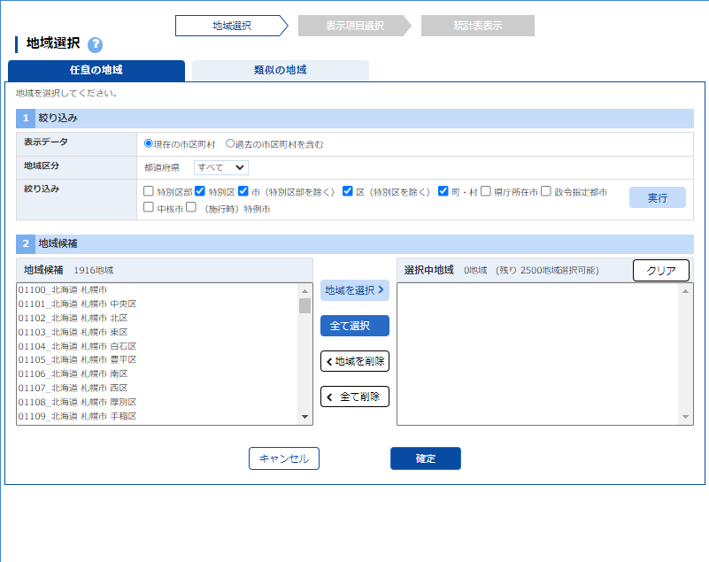 「地域選択」で「全て選択」をクリックする.