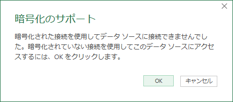 「暗号化のサポート」で注意書きが出るが,構わずにOKをクリックする.