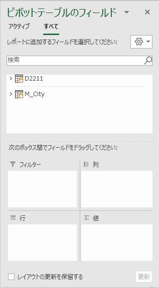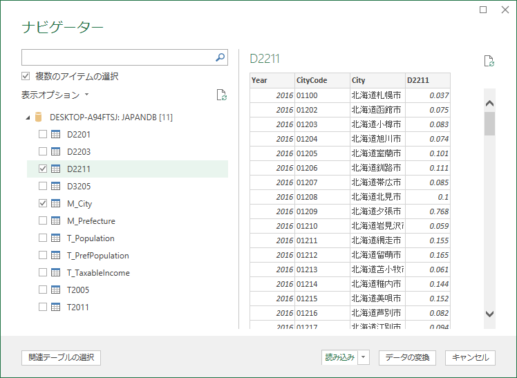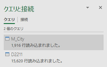 D2211 テーブルの右側に M_City テーブルが並んで表示されている.このまま慌てて「閉じて読み込む」を選んではいけない.