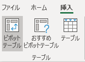 この後,ピボットテーブルを作成するのか,テーブルを作成するのかで選択肢が変わってくる.