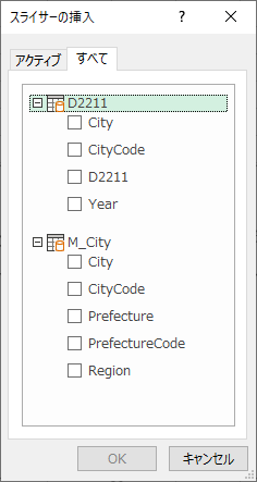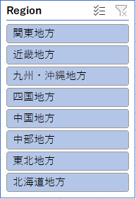 下図のようにスライサーができた.これはテーブルのフィルターのチェックボックスで「すべて選択」がチェックされているのと同じ状態である.
