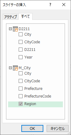 SQL で言うところの GROUP BY に続くキーである.ここでは地方区分を意味する Region にチェックを入れるが,都道府県単位の粒度が必要なら PrefectureCode にチェックを入れることになる.