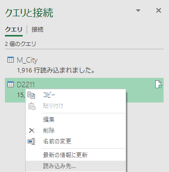 「クエリと接続」を右クリックして「読み込み先…」を選ぶ.