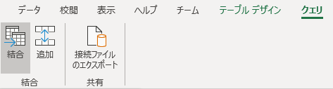 そのままインポートすると,テーブルが結合されずにインポートされるだけである.何か方法はないか探し回ってみると,「クエリ」タブがあるのに気がついた.「結合」とそれらしいキーワードが見える.