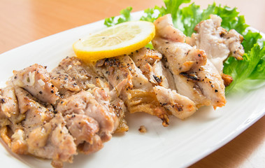 東京のコンビニで買ったサラダチキンのレモン味が美味しかったので,それに触発されて作ったものである.レモンの酸味は加熱によって薄まり,肉の臭みがレモンによって爽やかになる.肉を果実と一緒に煮たり焼いたりするのは中東やヨーロッパの料理に多く,和食とは違う味わいがある.レモンは国産が良い.輸入ものはワックスがかかっていて苦味があり,美味しくない.