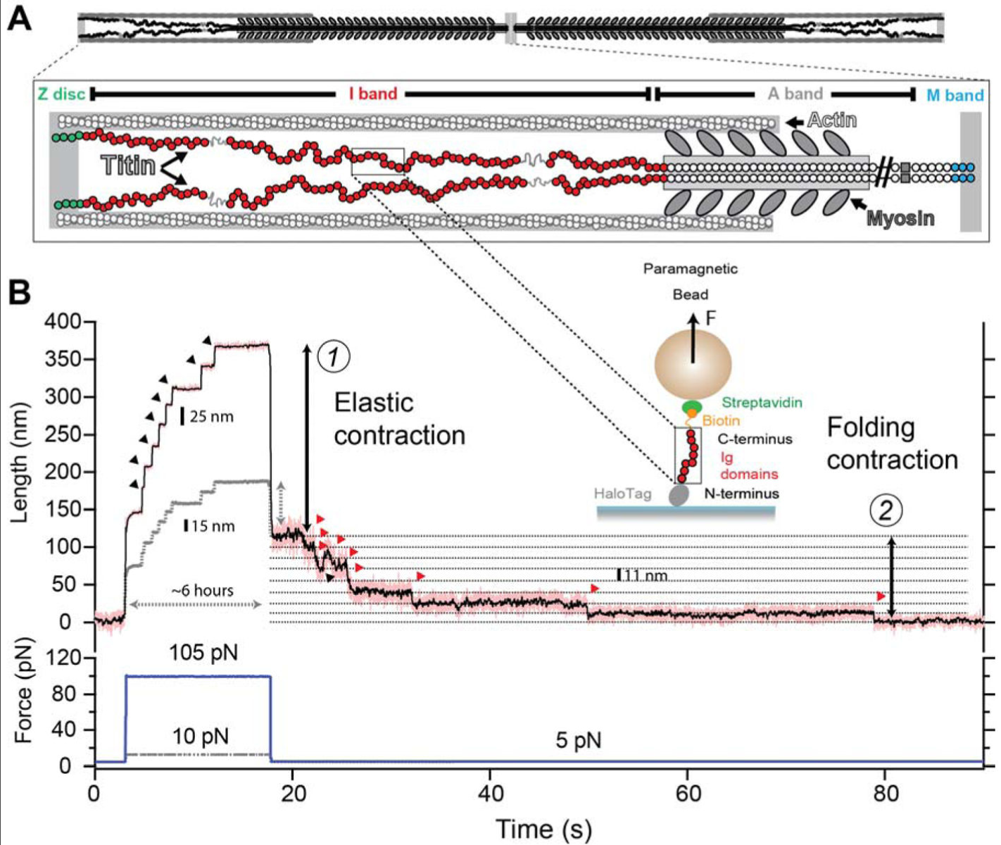 現在ではタイチン分子の折りたたみ(フォールディング)と伸展(アンフォールディング)が弾性エネルギーの根源ではないかと考えられており, titin folding 仮説という.今回はその根拠となる論文を紹介する.