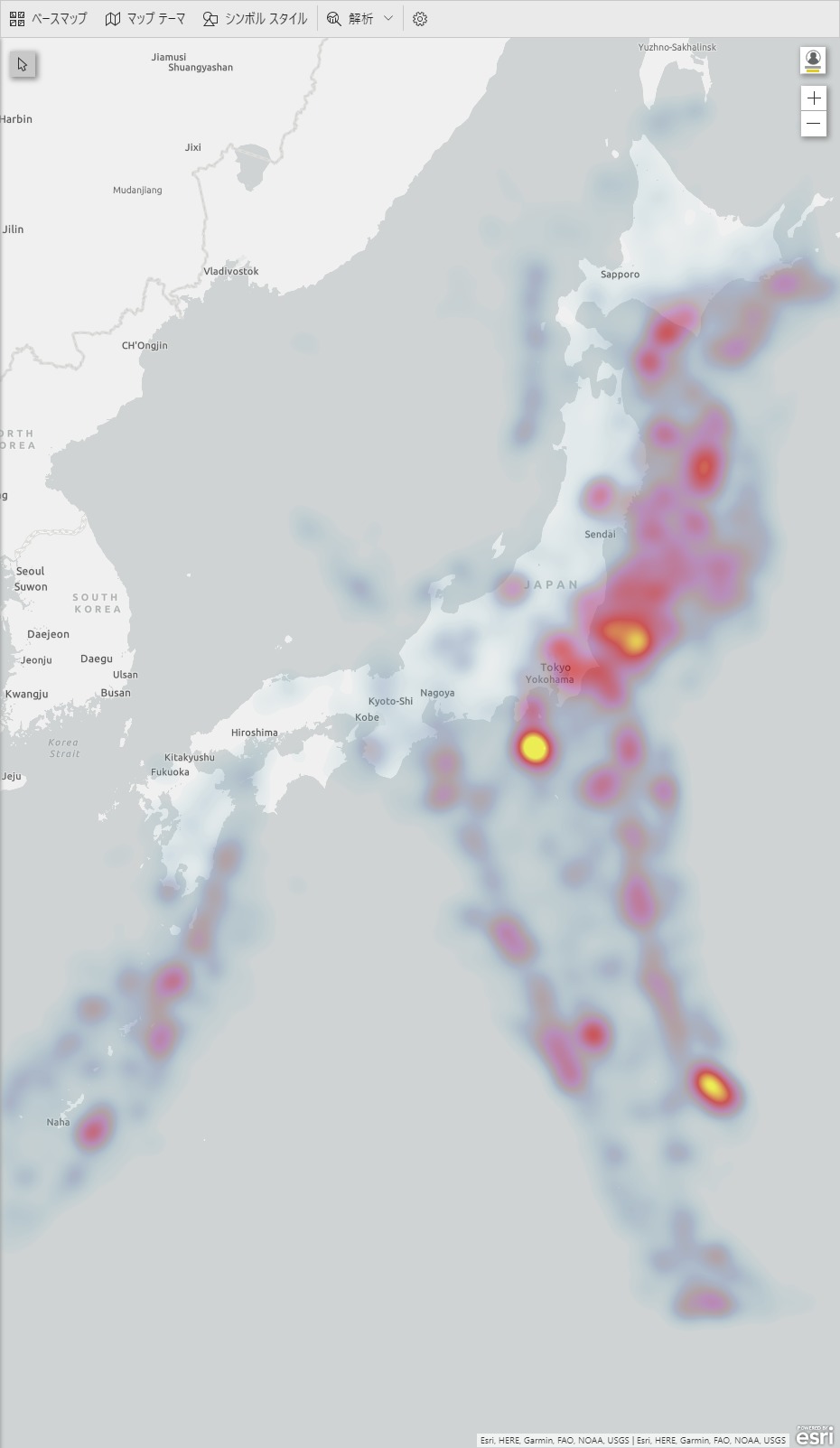 最初 EXCEL のバブルチャートで表現しようとしたのだが,データ数が多すぎて EXCEL がフリーズした.それならと散布図で表現しようとしたが,時間がかかりすぎるため,現実的ではないと判断し,Power BI に切り替えた.
