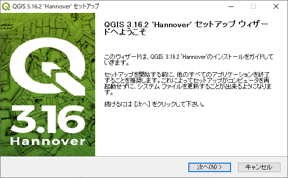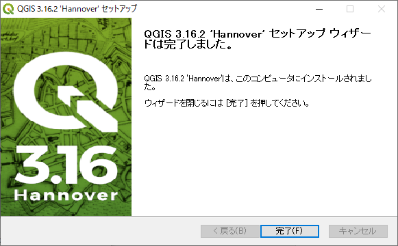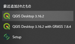 Windowsメニューの「最近追加されたもの」に QGIS が追加されておりここをクリックして起動する.