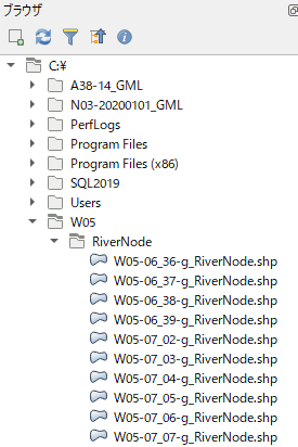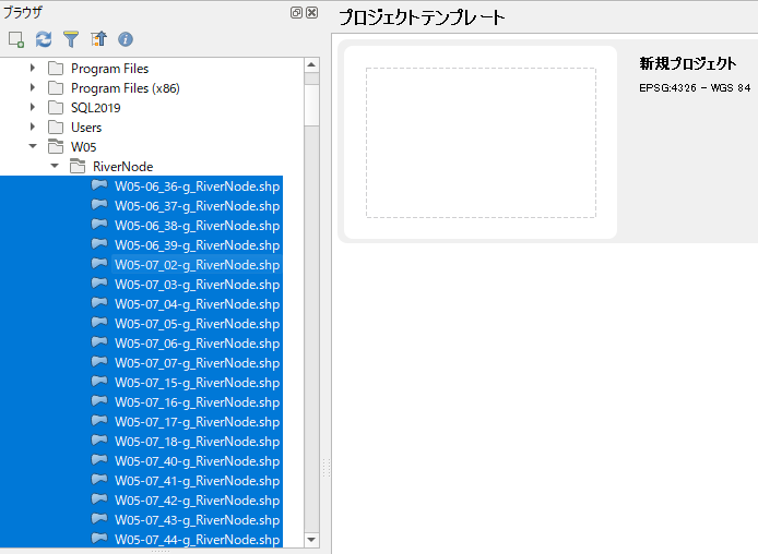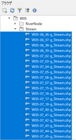 流路のシェープファイルをすべて選択しドラッグアンドドロップする.