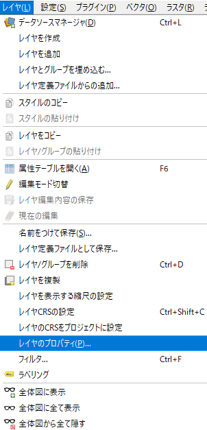 「レイヤ」メニューから「レイヤのプロパティ」を選ぶ.