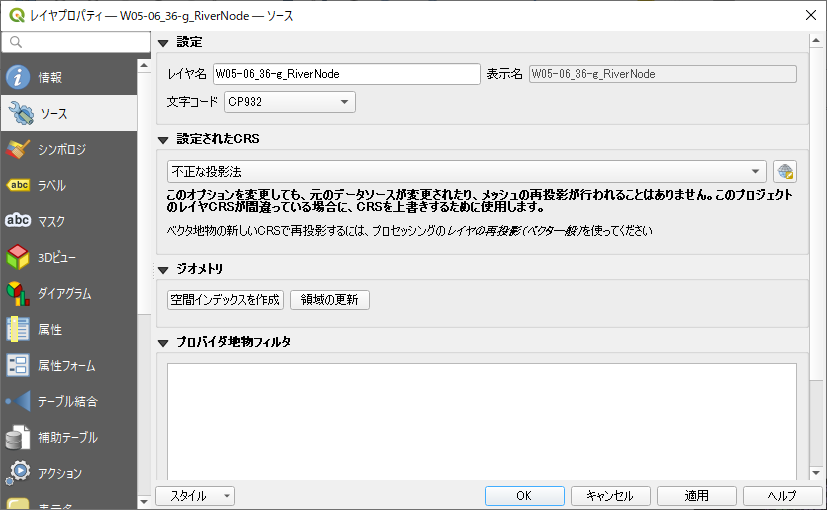 どうも GIS を扱うには QGIS が避けては通れないようだ.今回はダウンロードとインストールを行い,国土数値情報の河川データを取り込んでみた.