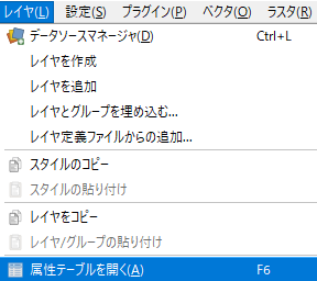 「レイヤ」メニューから「属性テーブルを開く」を選ぶ.