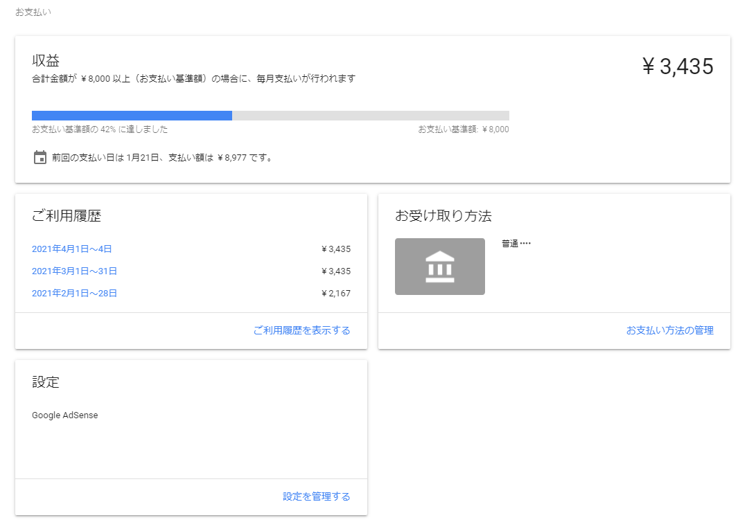 各自の Google AdSense ( https://www.google.com/adsense/new/u/0/pub-xxxxxxxxxxxxxxxx/payments ) にアクセスして「お支払い」タブの「設定」ペインの「設定を管理する」をクリックする.
