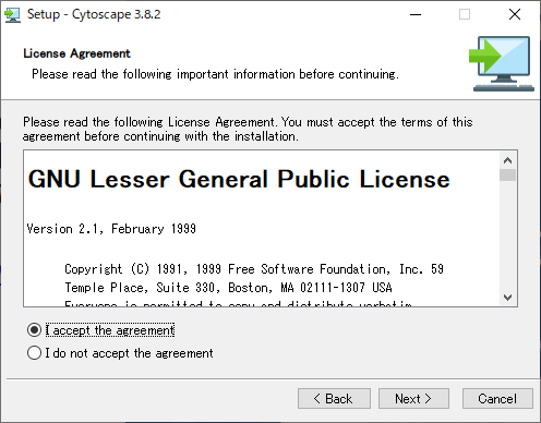 Accept をクリックして yFiles Layout Algorithms のソフトウェアライセンスを了承する.