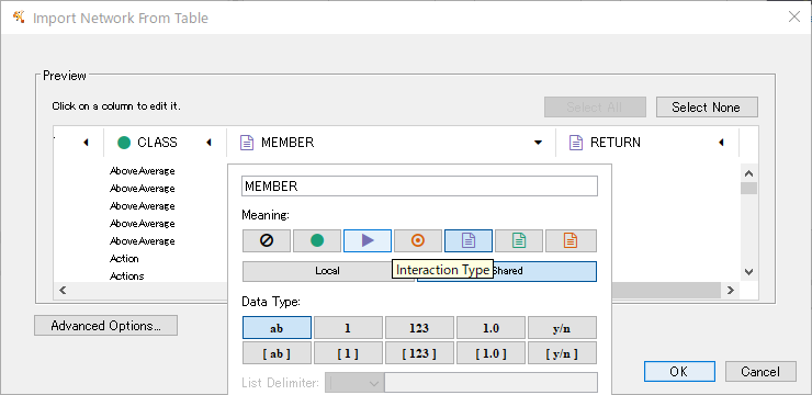 クラスを Source Node に,メンバーを Interaction Type に,戻り値を Target Node に指定