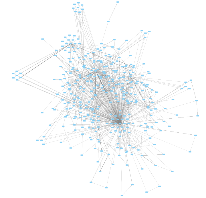 初期設定は Prefuse Force Directed OpenCL Layout であるが,密集していて分かりづらい.様々なレイアウトを試していくことにする.