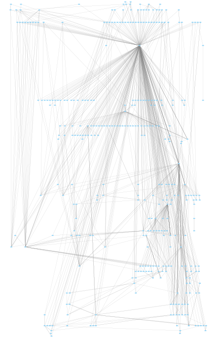 筆者は Cytoscape の使用法に関しては素人である.他にもっと有効な使用法があると思われるが,コミュニティの中で議論されたい.参考までに今回の可視化に使用したデータファイルを置いておく.文字コードは UTF8 である.1行目はヘッダーで REFERENCE, LIBRARY, CLASS, MEMBER, RETURN である.