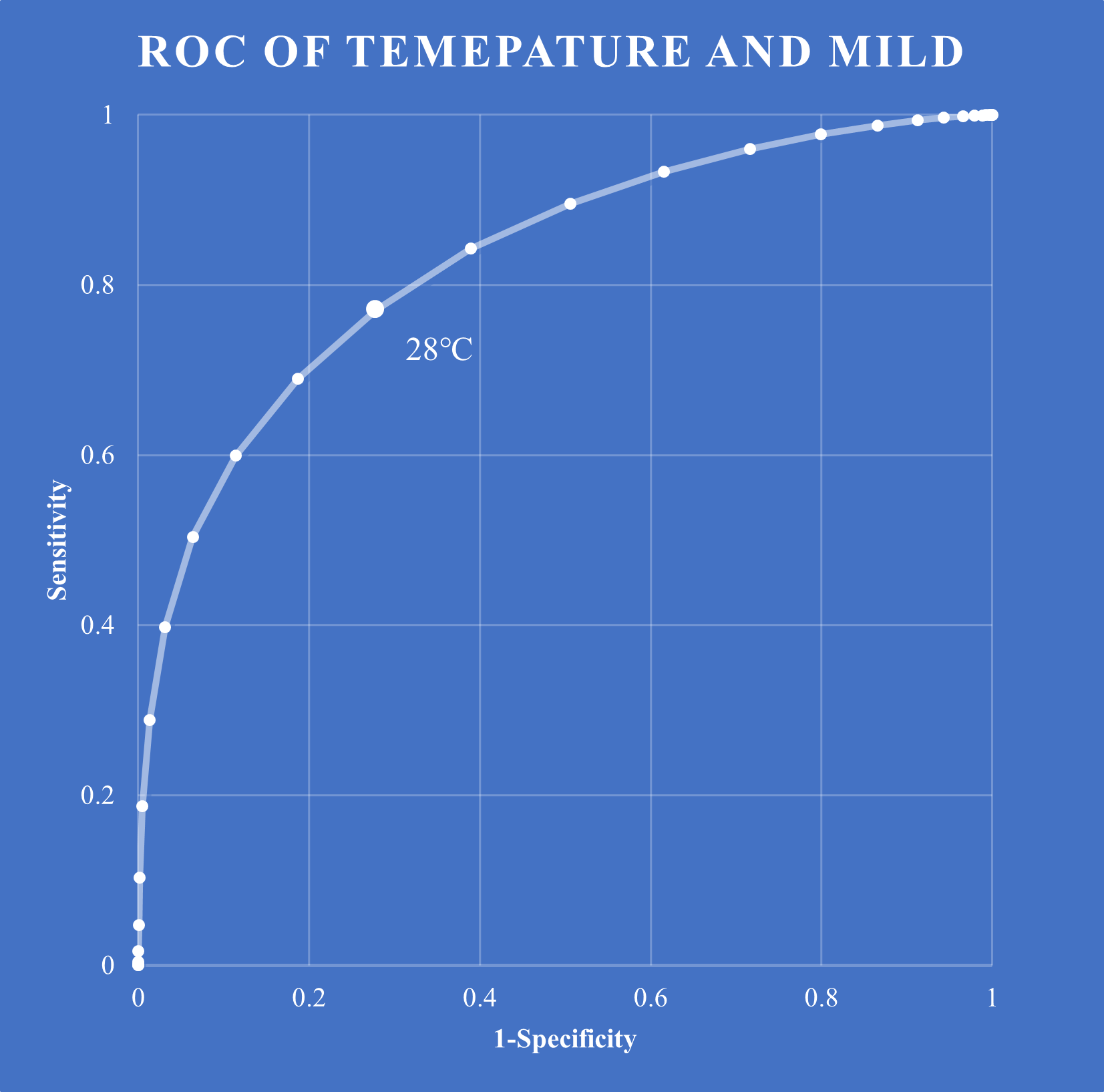 軽症における閾値は28℃,感度は0.77, 特異度は0.72であった.