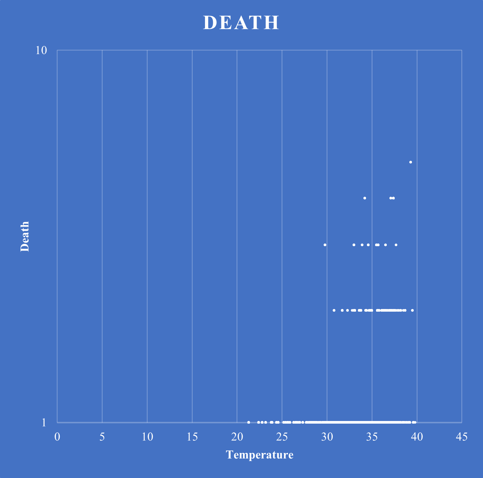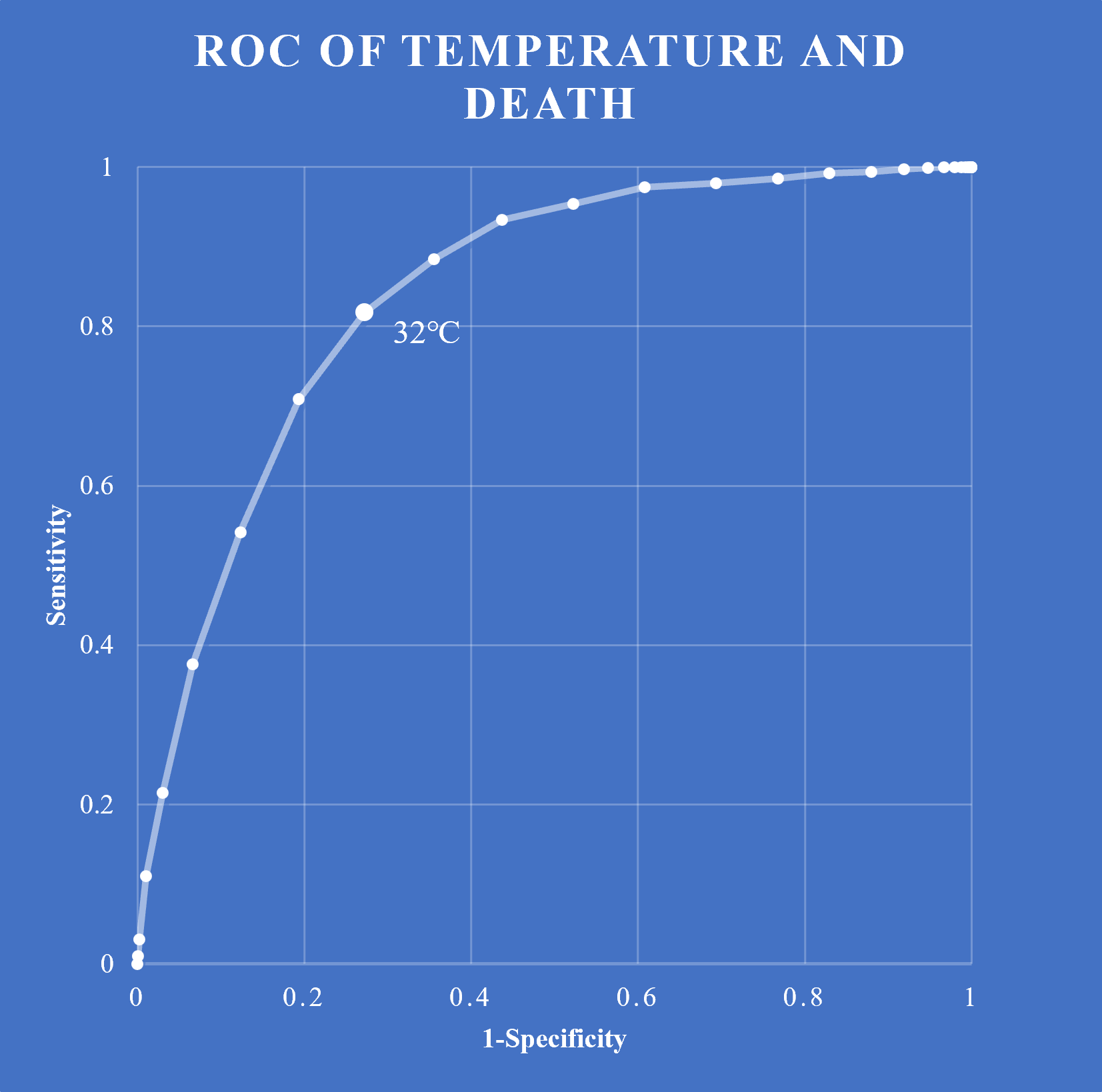死亡における閾値は32℃,感度は0.82, 特異度は0.73であった.