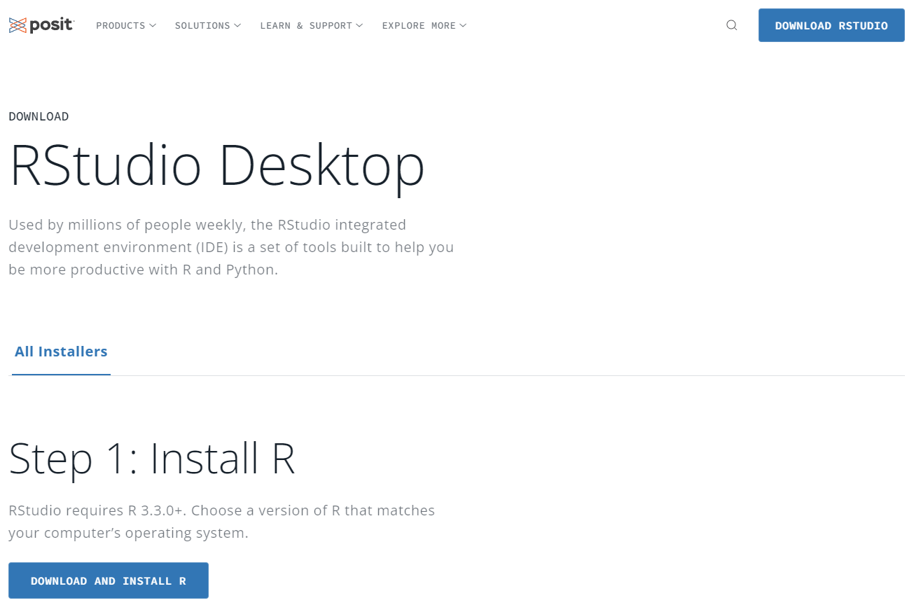 画面をスクロールしてDOWNLOAD RSTUDIO DESKTOP FOR WINDOWSボタンをクリックするとダウンロードが始まる.