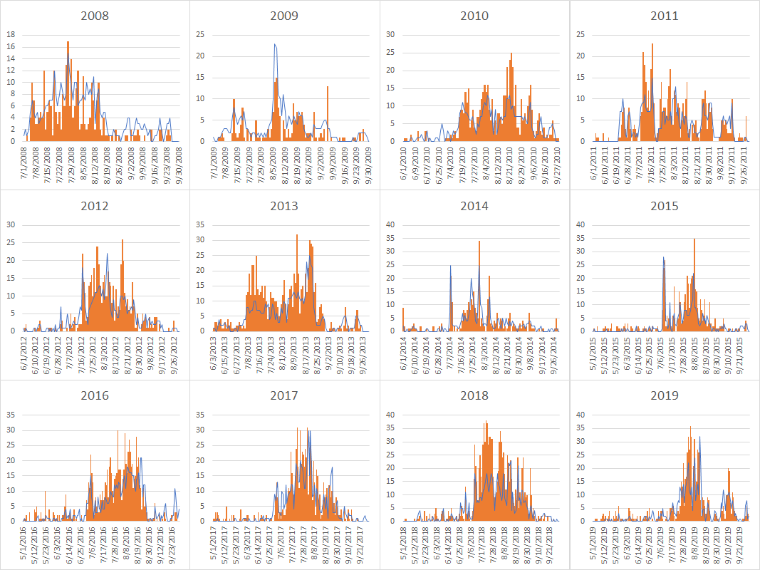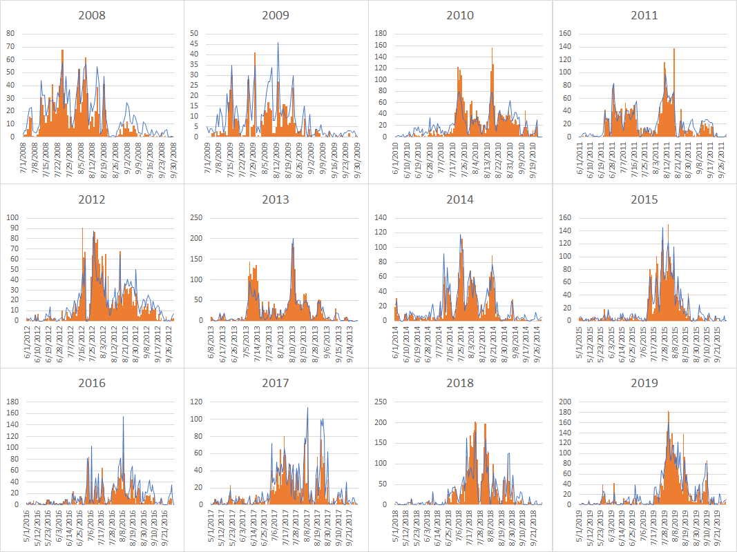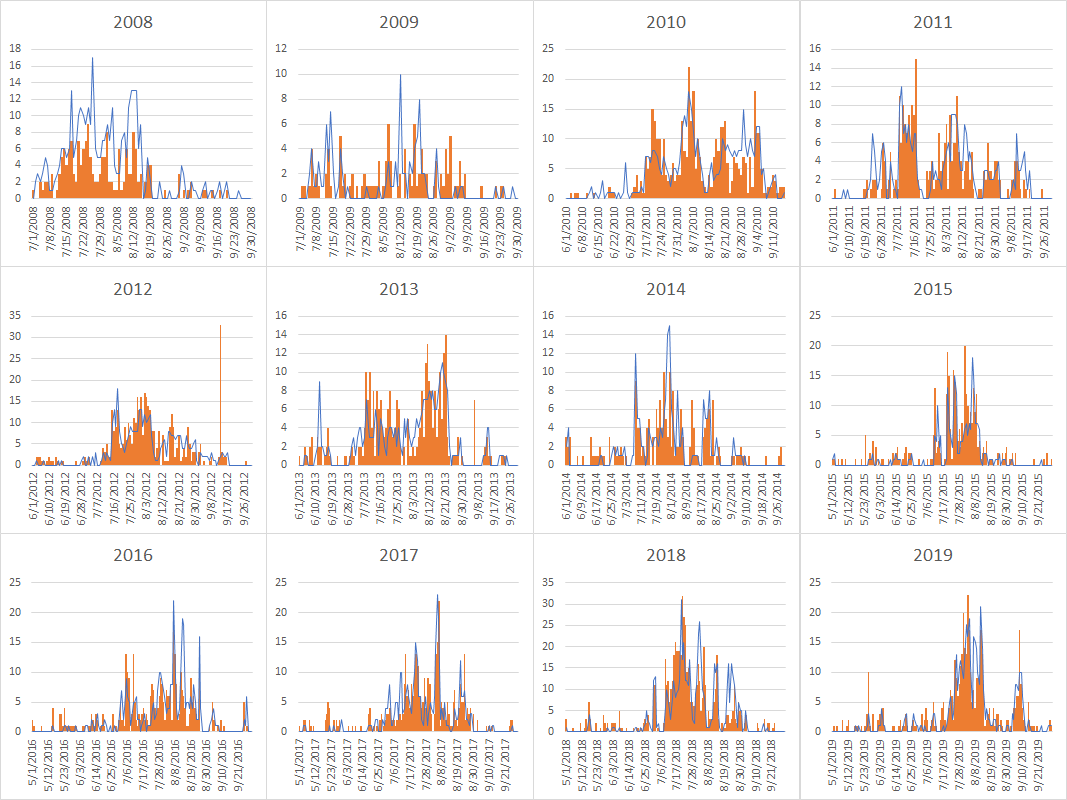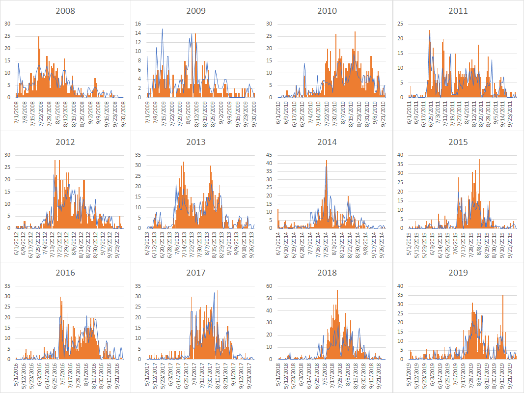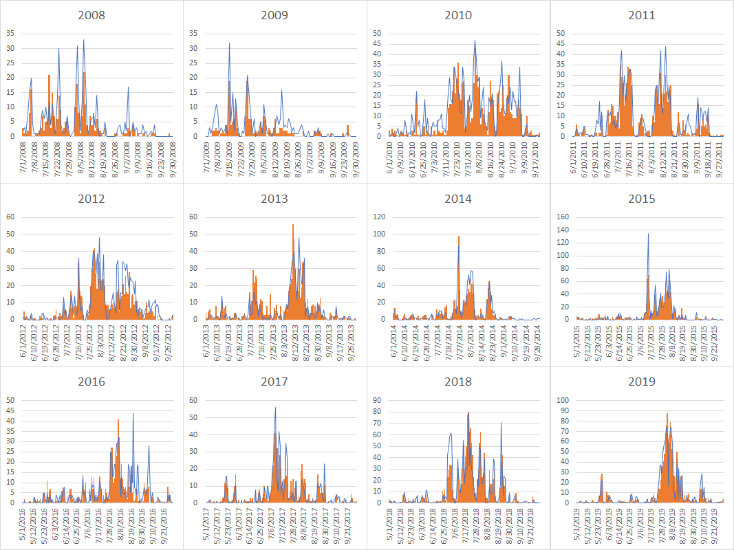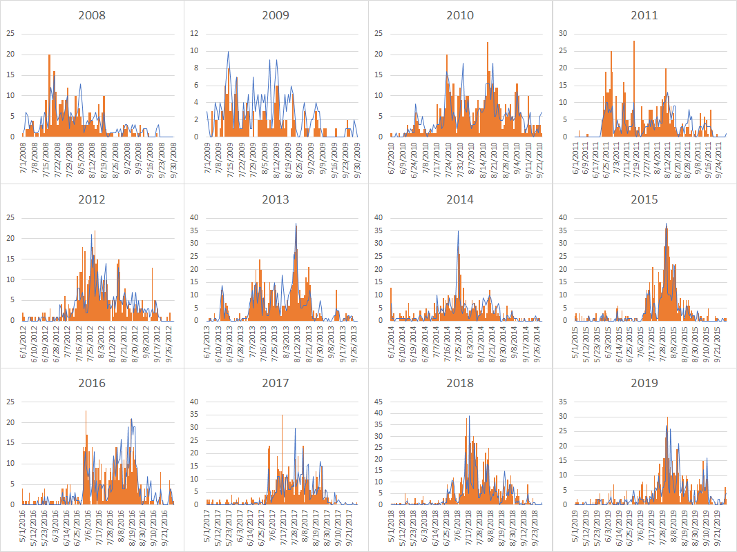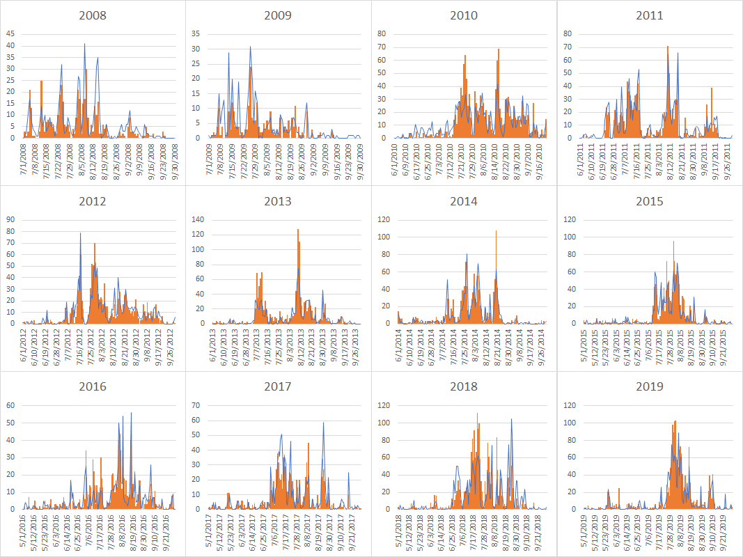 今回は社会疫学的指標を独立変数として加えた熱中症搬送人員数の予測と実際を示す.