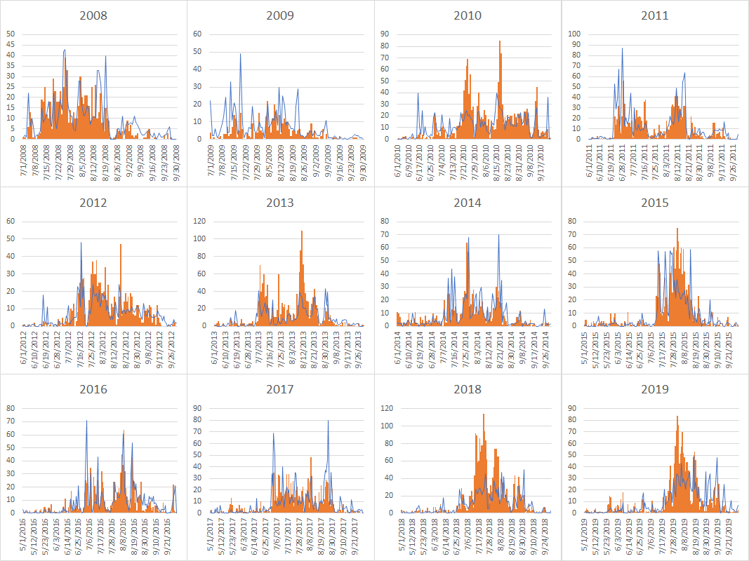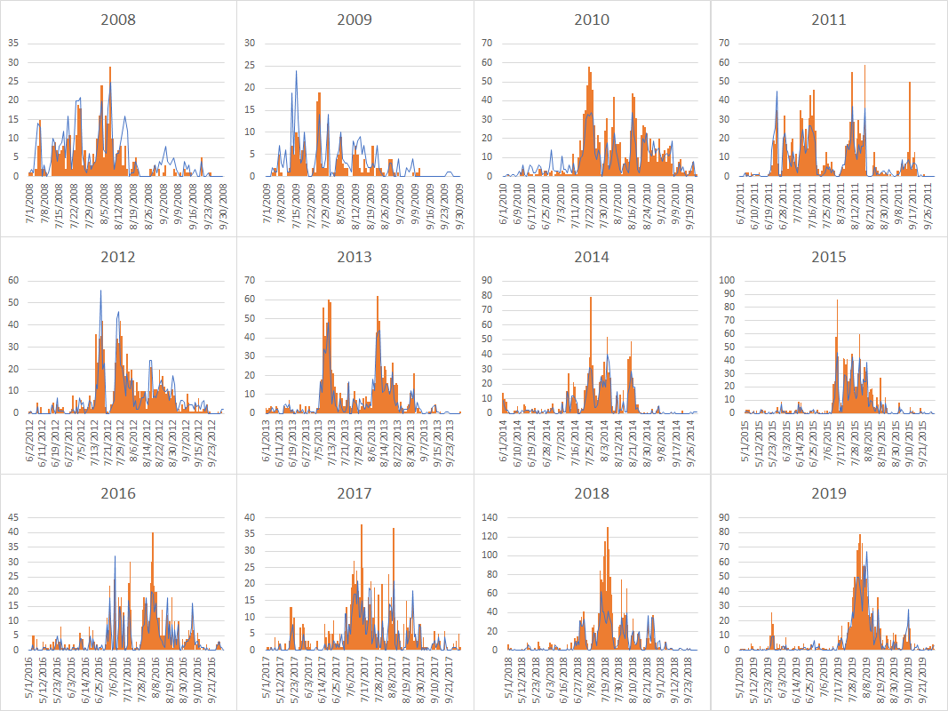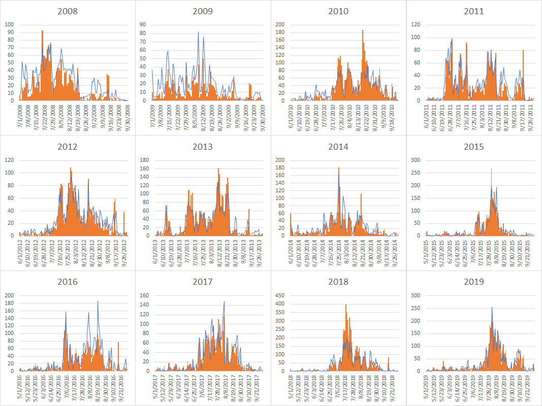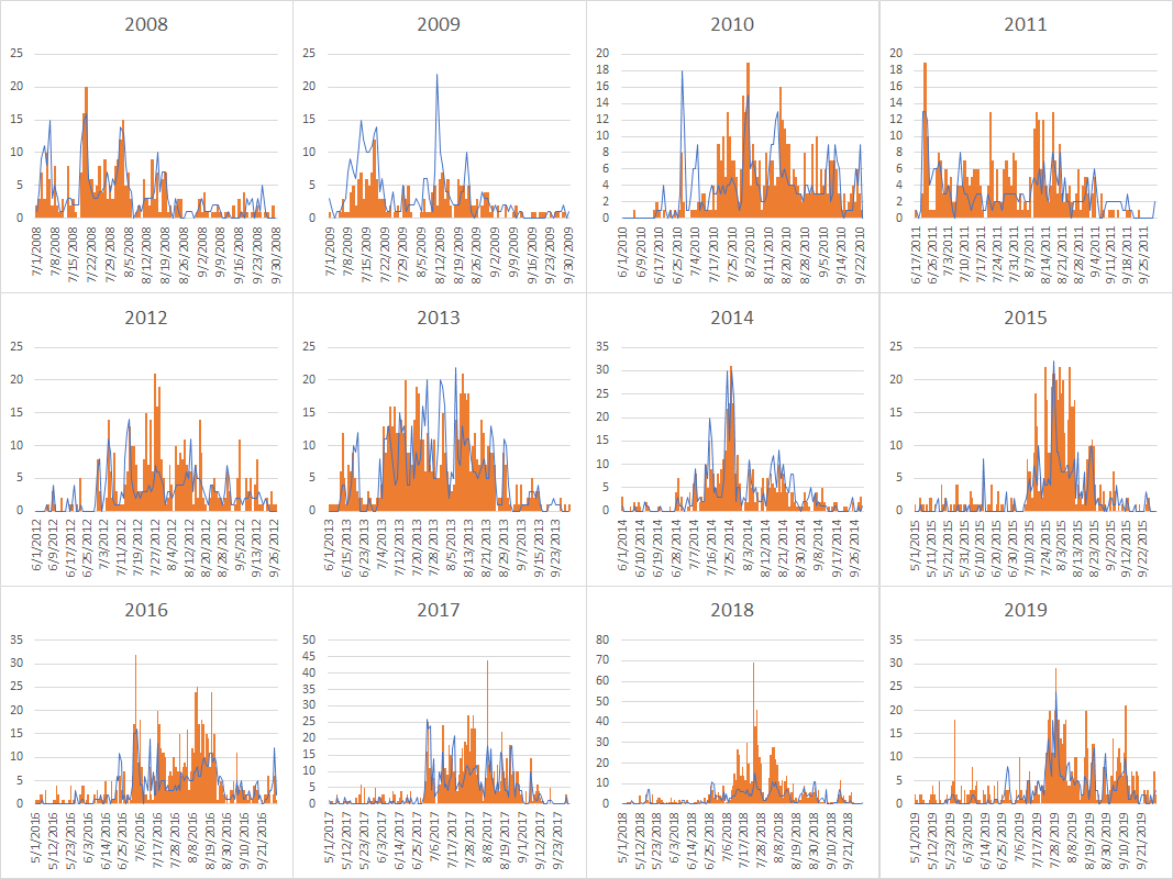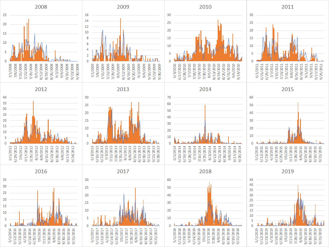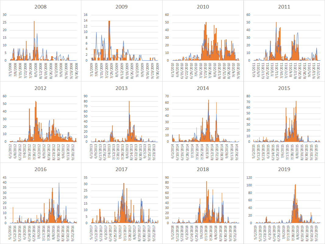 今回は社会疫学的指標を独立変数として加えた熱中症搬送人員数の予測と実際を示す.