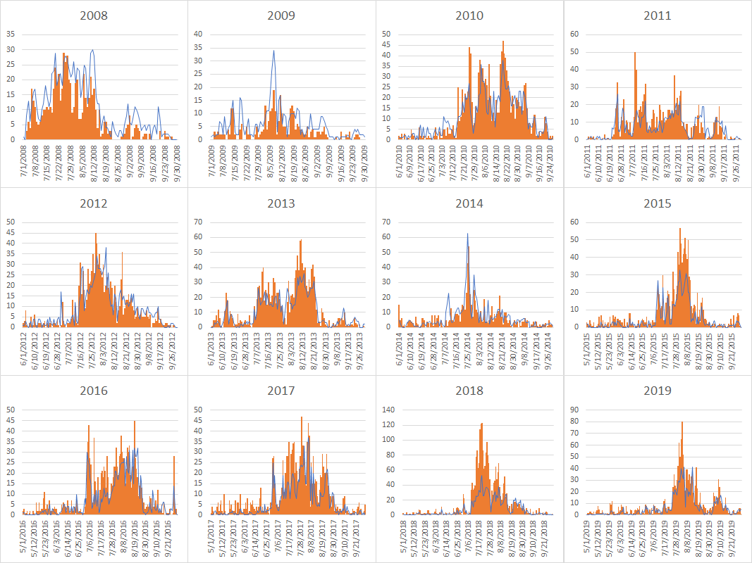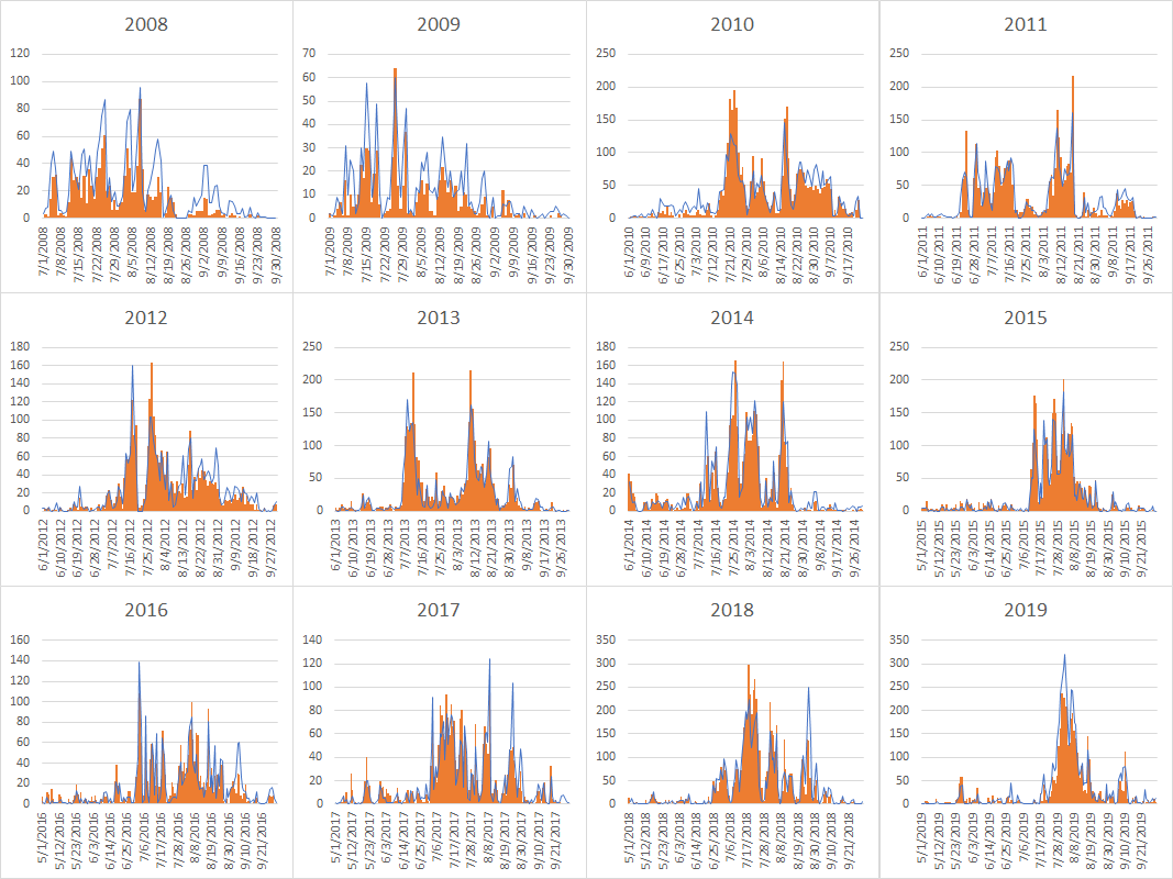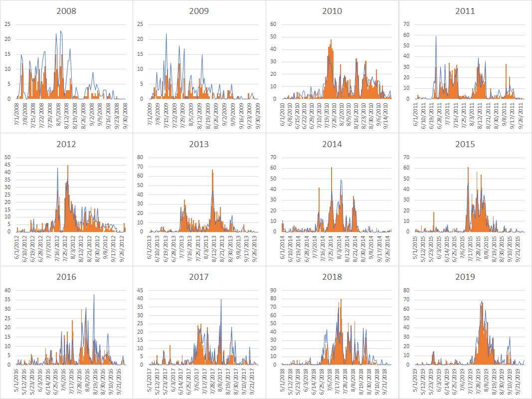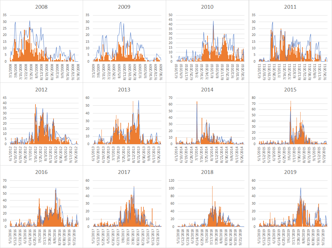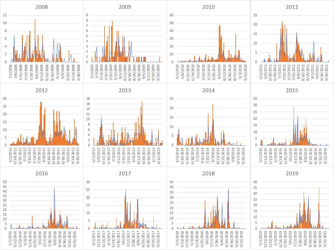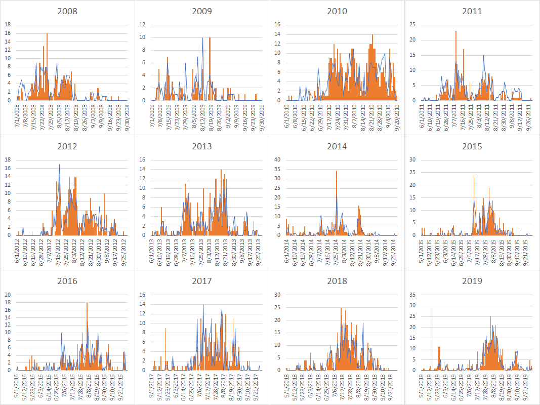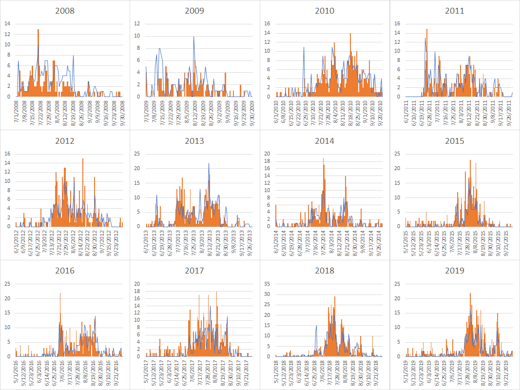 今回は社会疫学的指標を独立変数として加えた熱中症搬送人員数の予測と実際を示す.