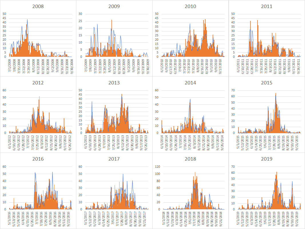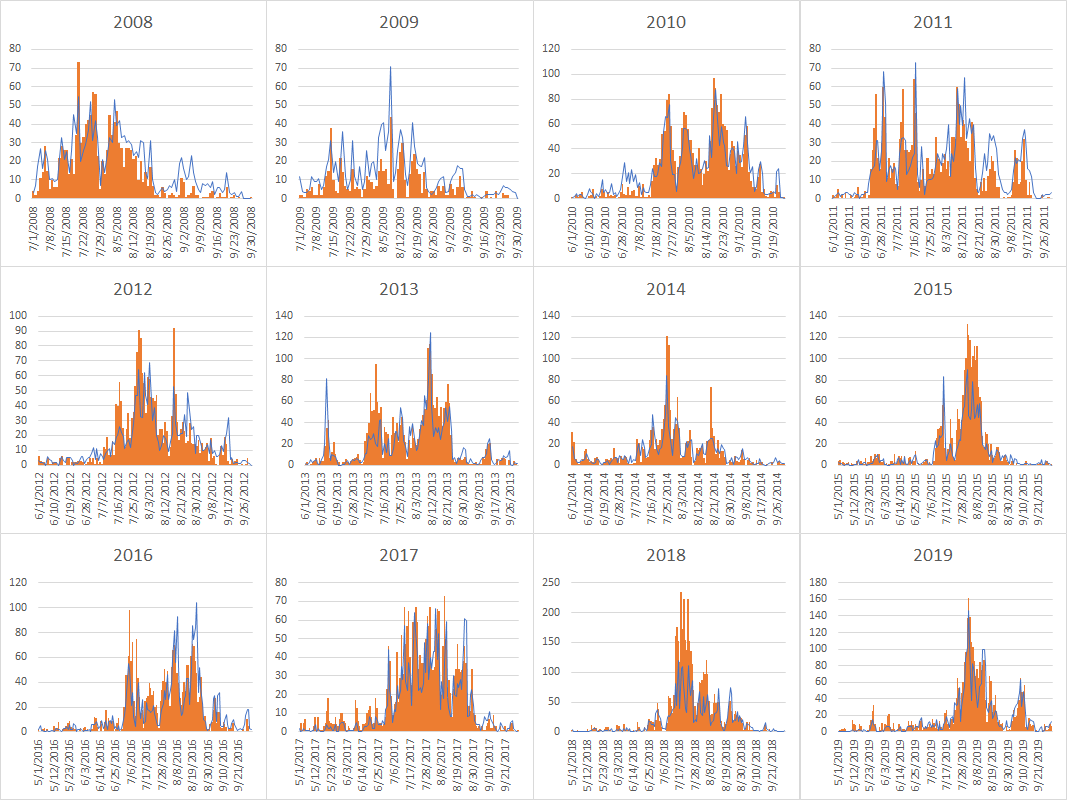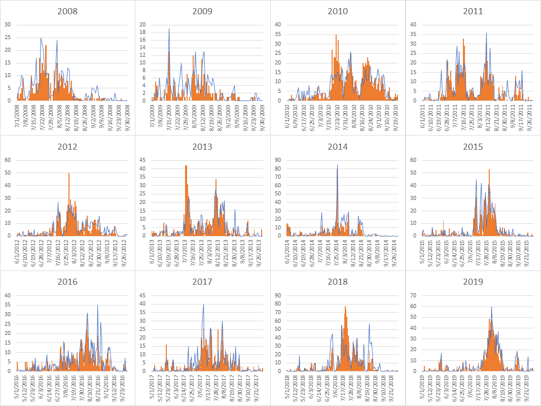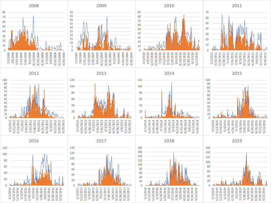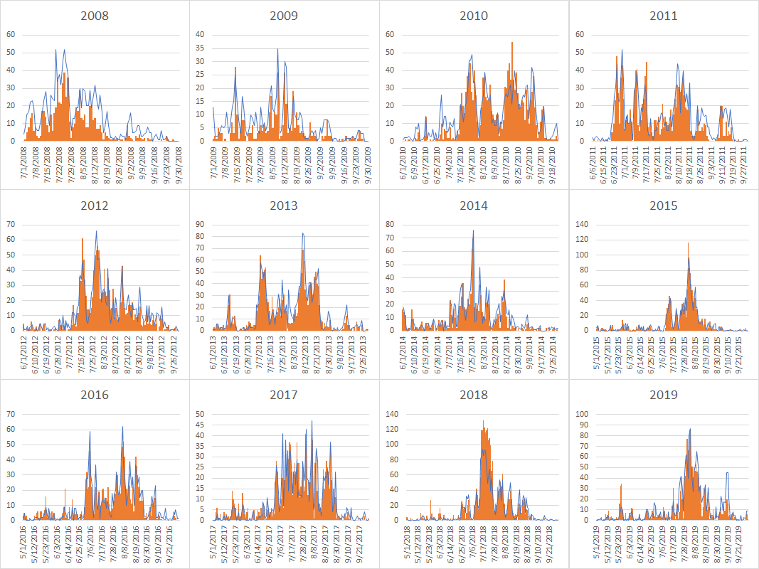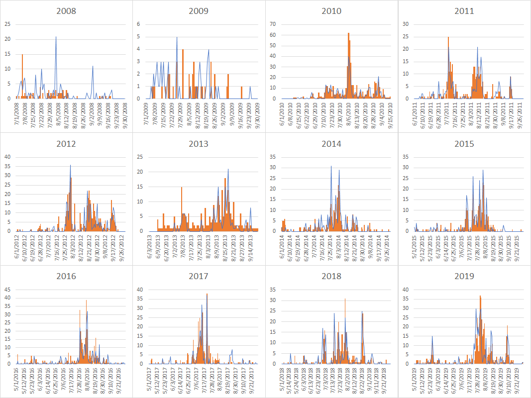 今回は社会疫学的指標を独立変数として加えた熱中症搬送人員数の予測と実際を示す.