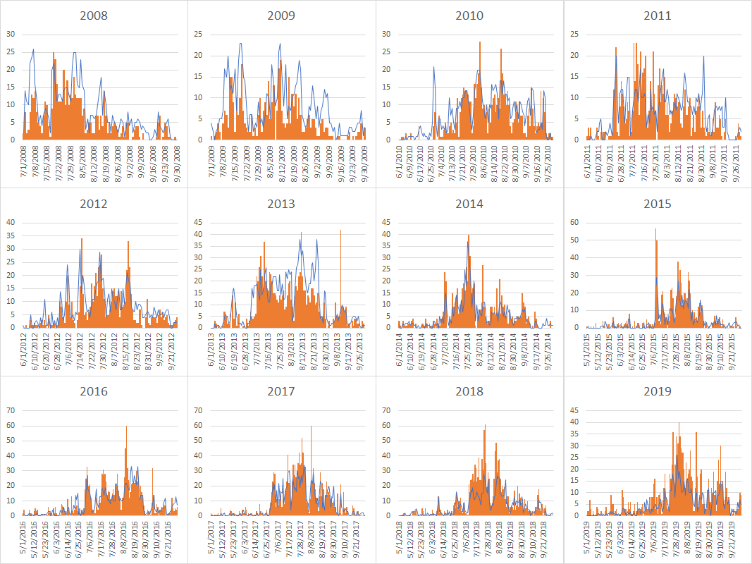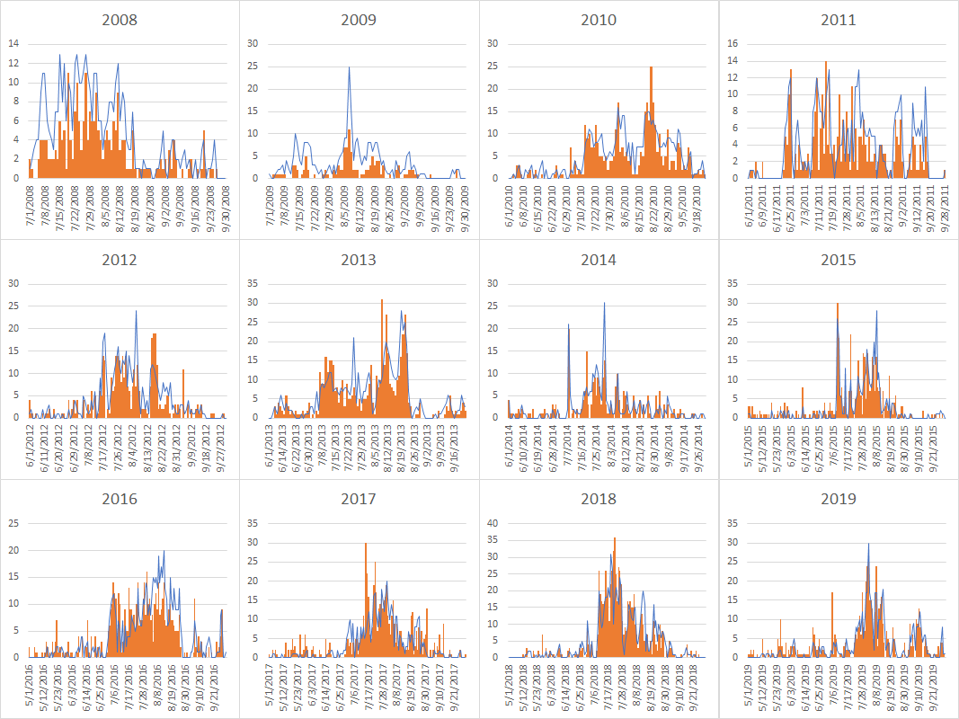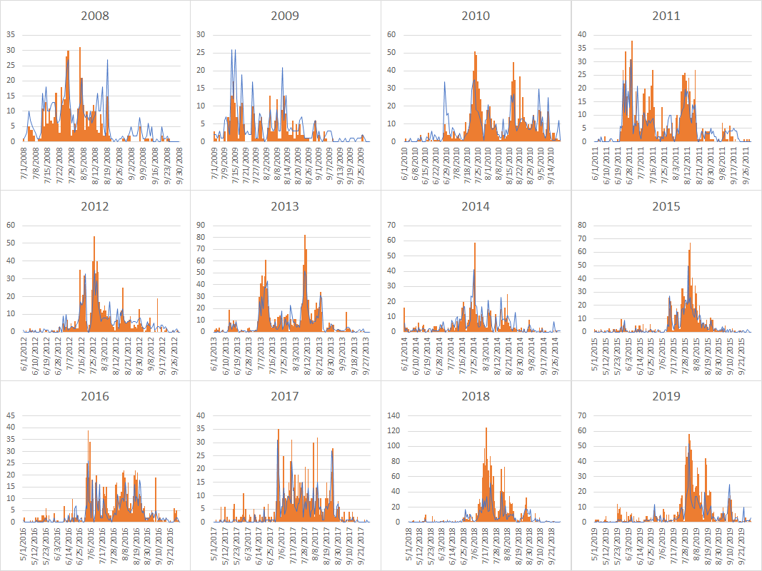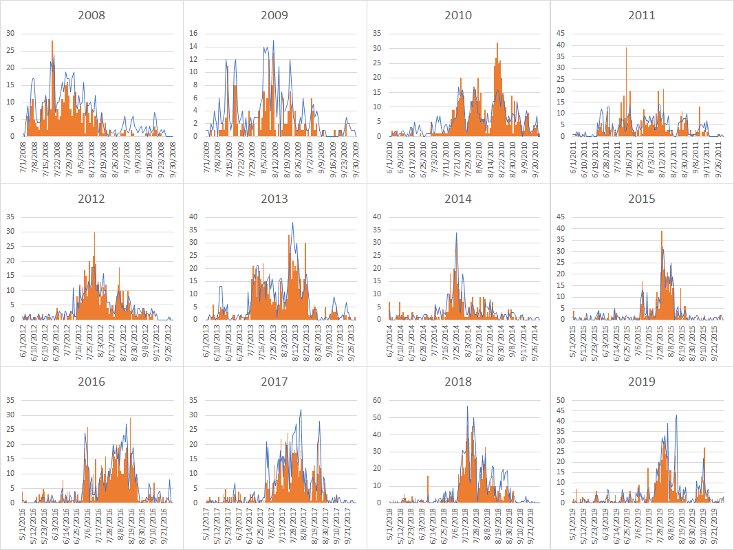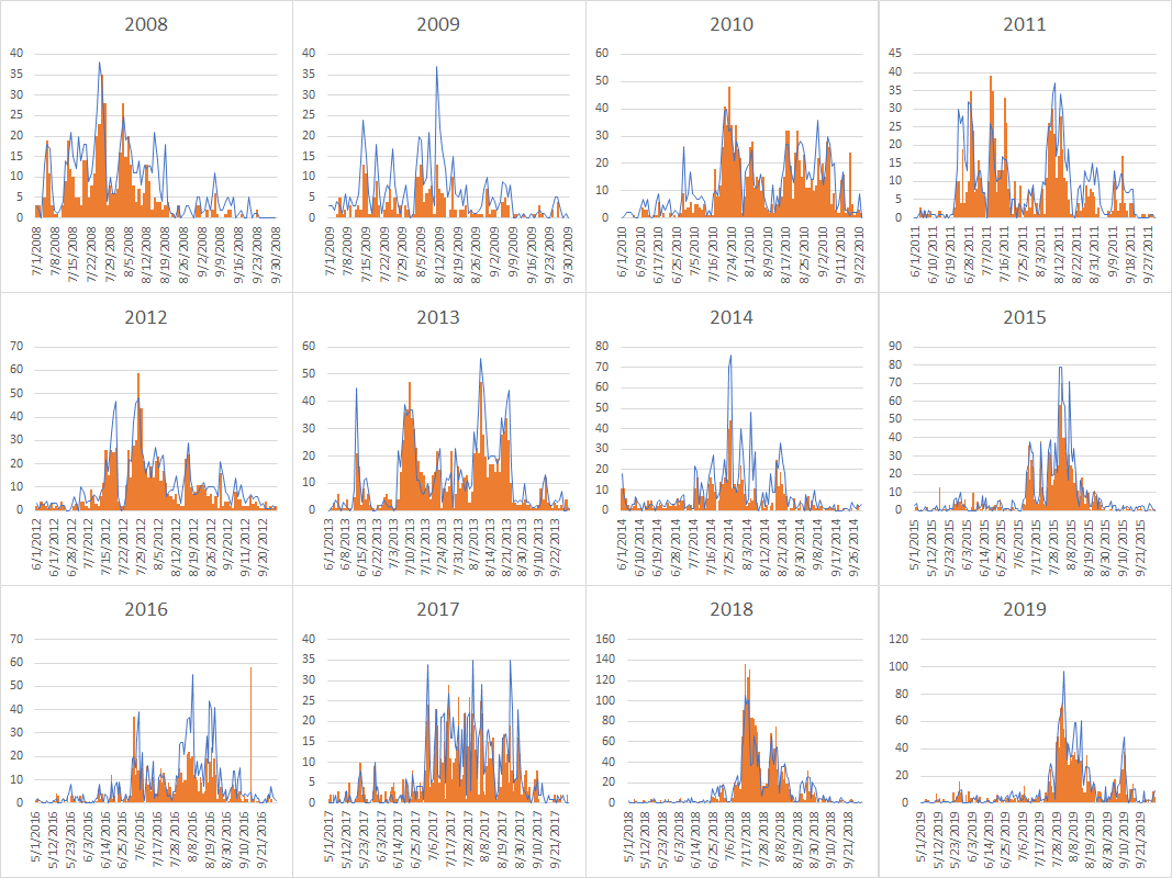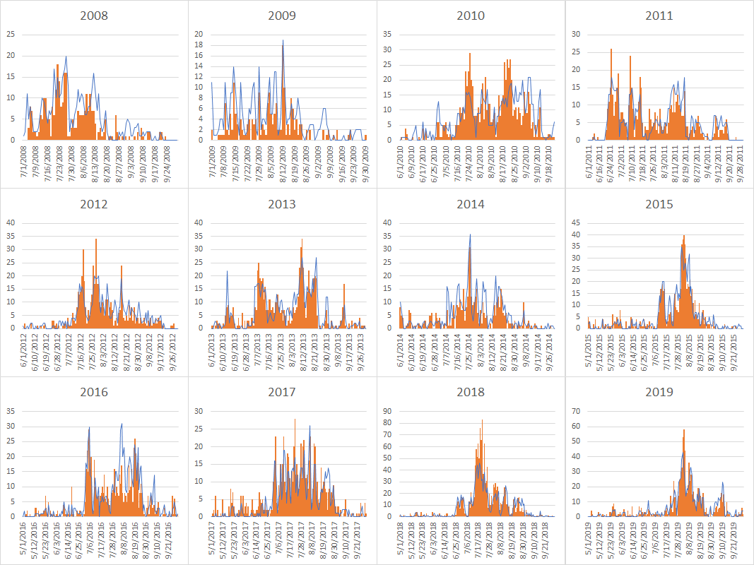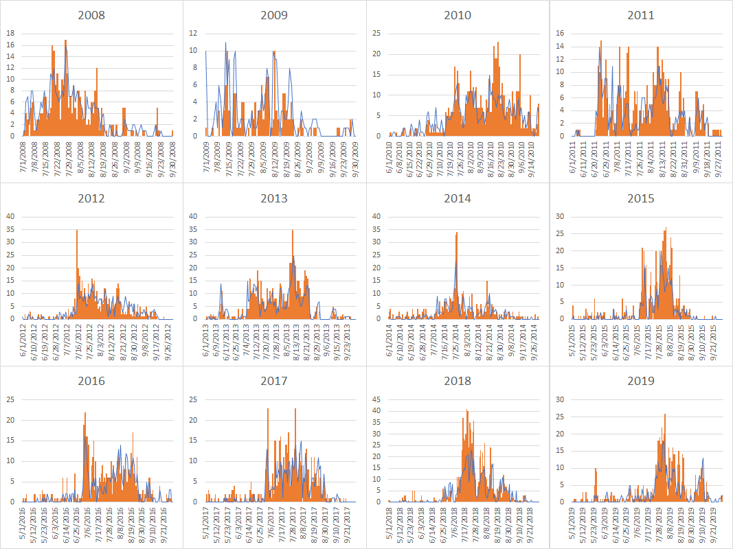 今回は社会疫学的指標を独立変数として加えた熱中症搬送人員数の予測と実際を示す.