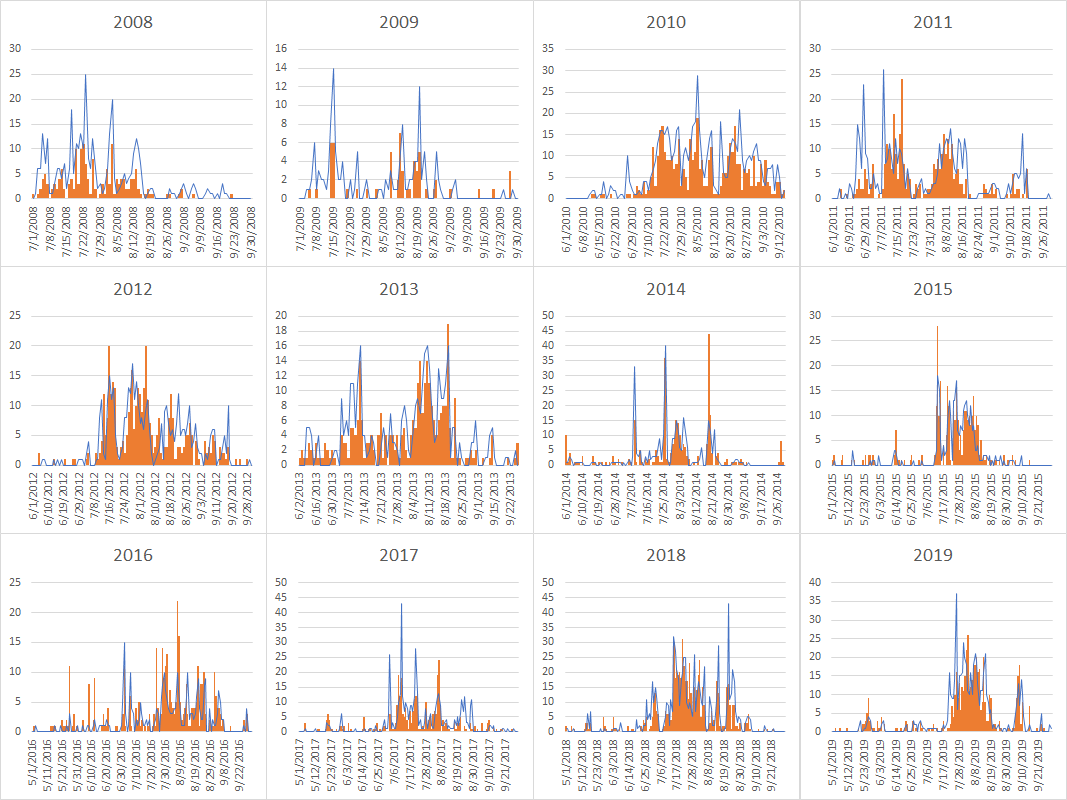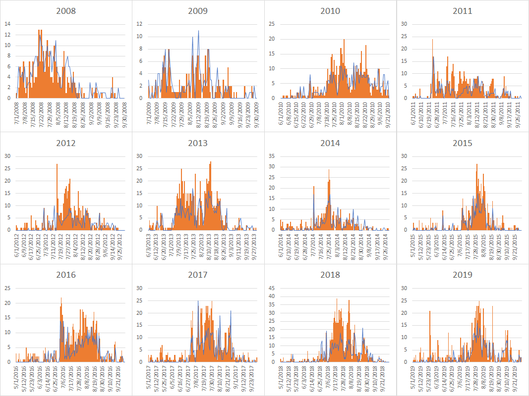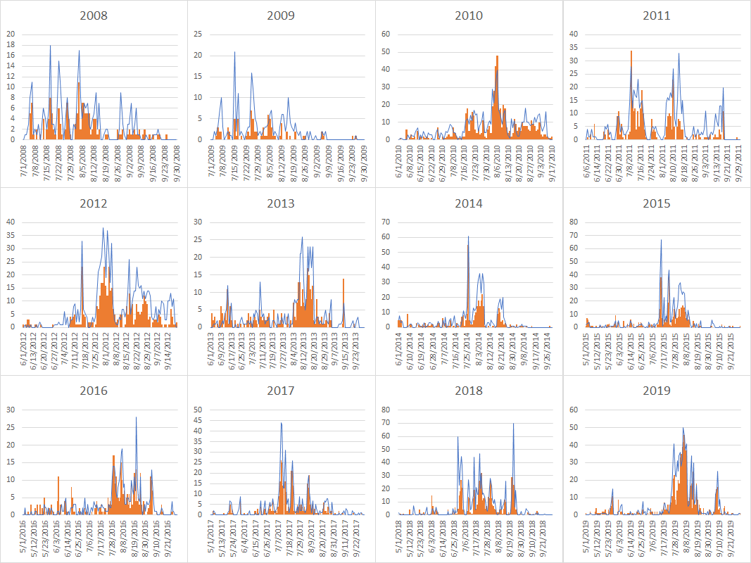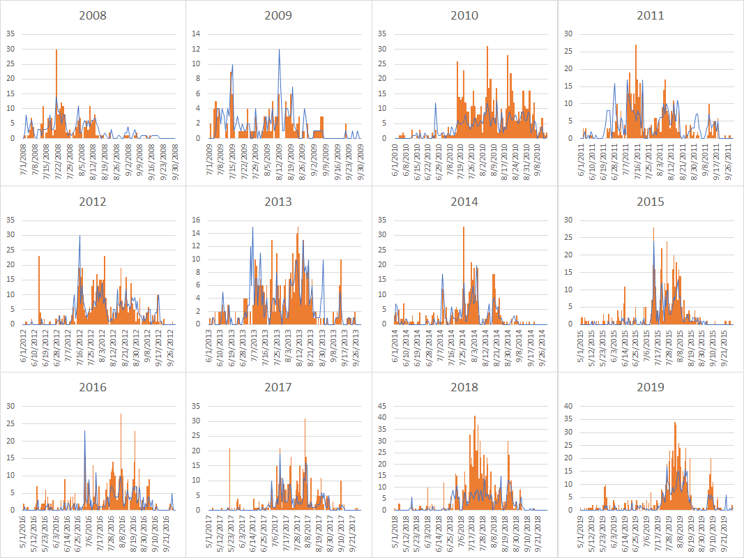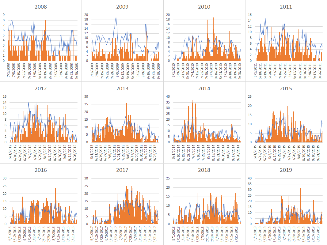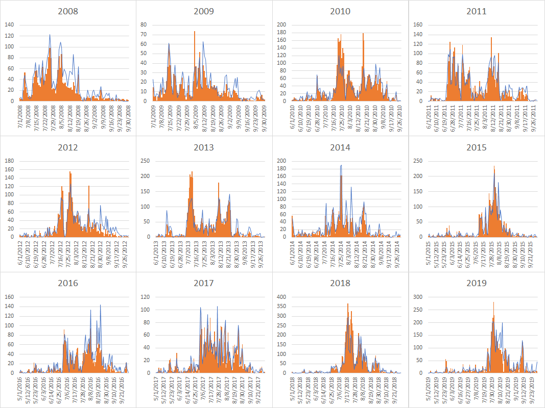 今回は社会疫学的指標を独立変数として加えた熱中症搬送人員数の予測と実際を示す.