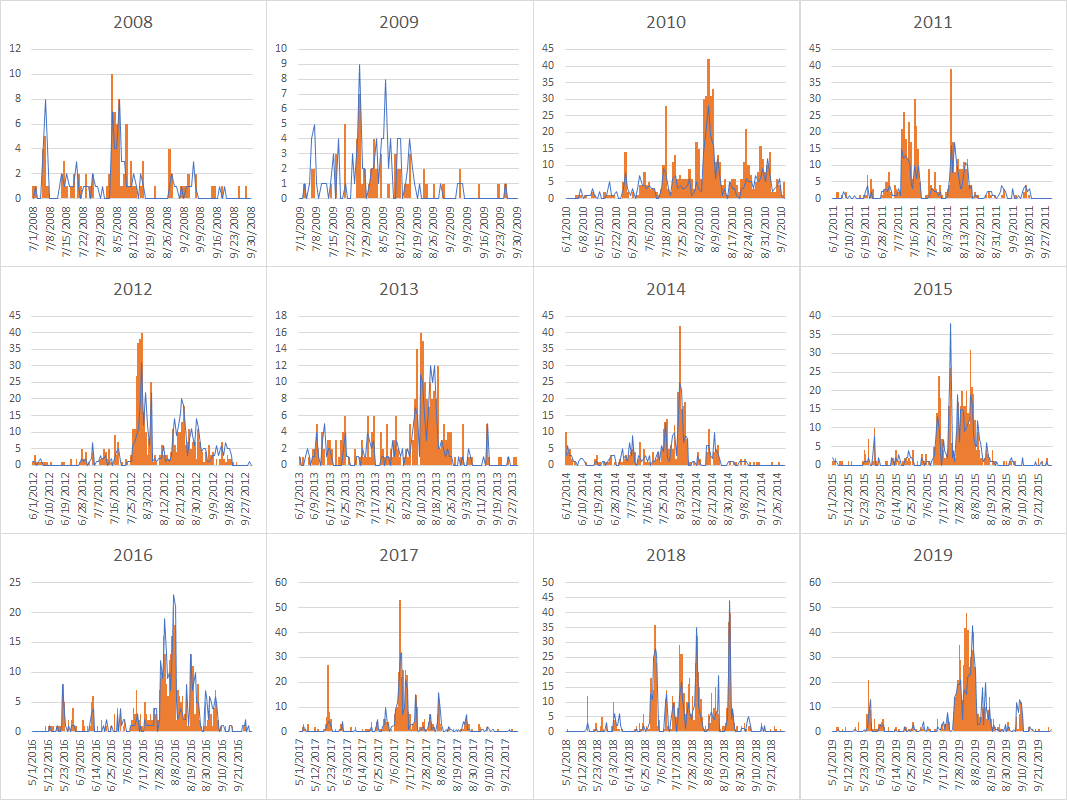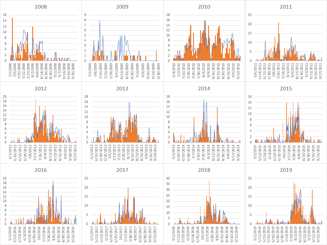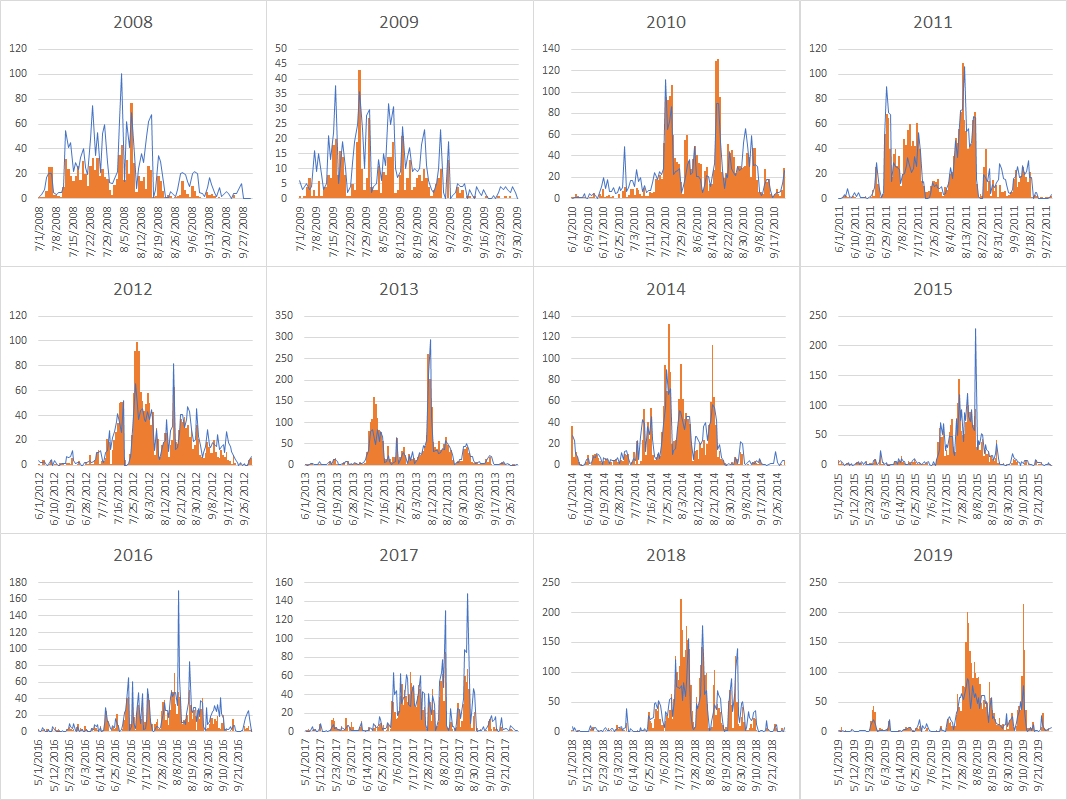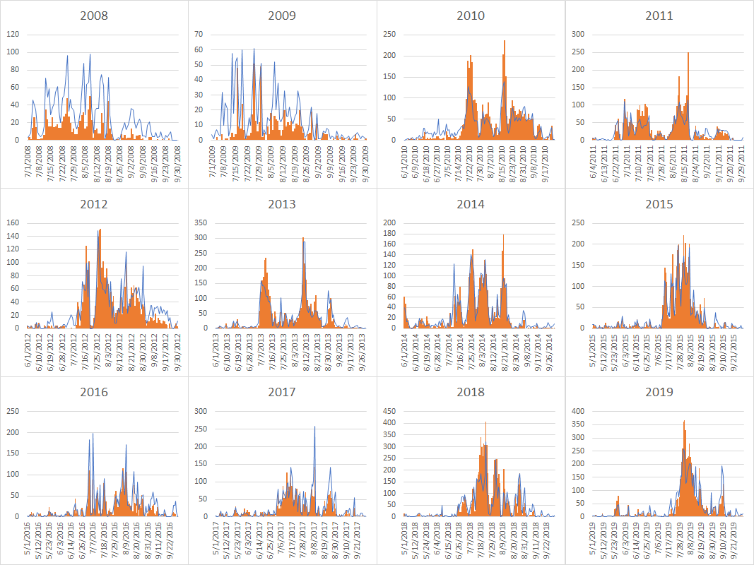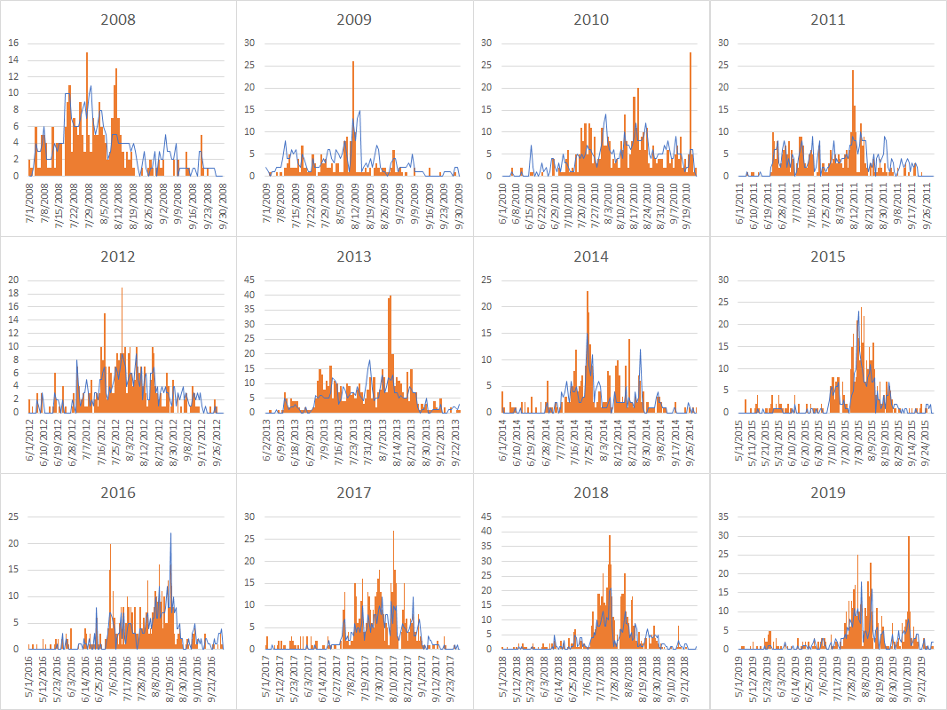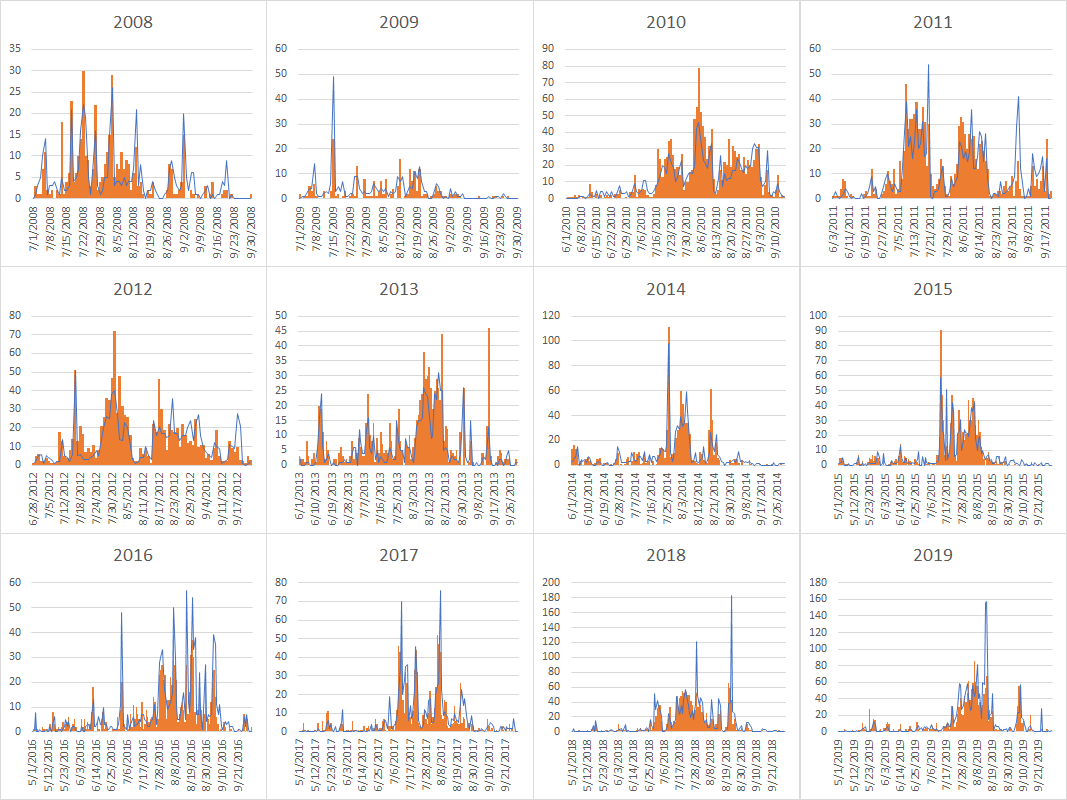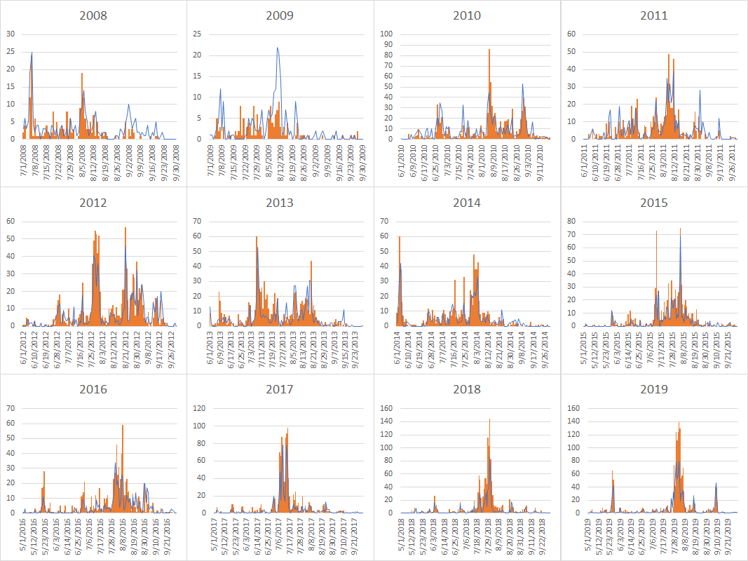 今回は社会疫学的指標を独立変数として加えた熱中症搬送人員数の予測と実際を示す.