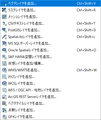 「レイヤ」「レイヤを追加」「ベクタレイヤを追加」と進む.