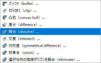 まずは「ベクタ」「空間演算ツール」「融合(dissolve)」と進む.