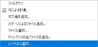 下の方に「バッチプロセスとして実行」というボタンがあるのでクリックする.「入力レイヤ」「オートフィル」「レイヤから選択」と進む.