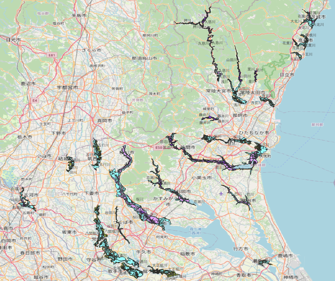 詳細は国土数値情報の洪水浸水想定区域データをQGISで表現するを参照のこと.
