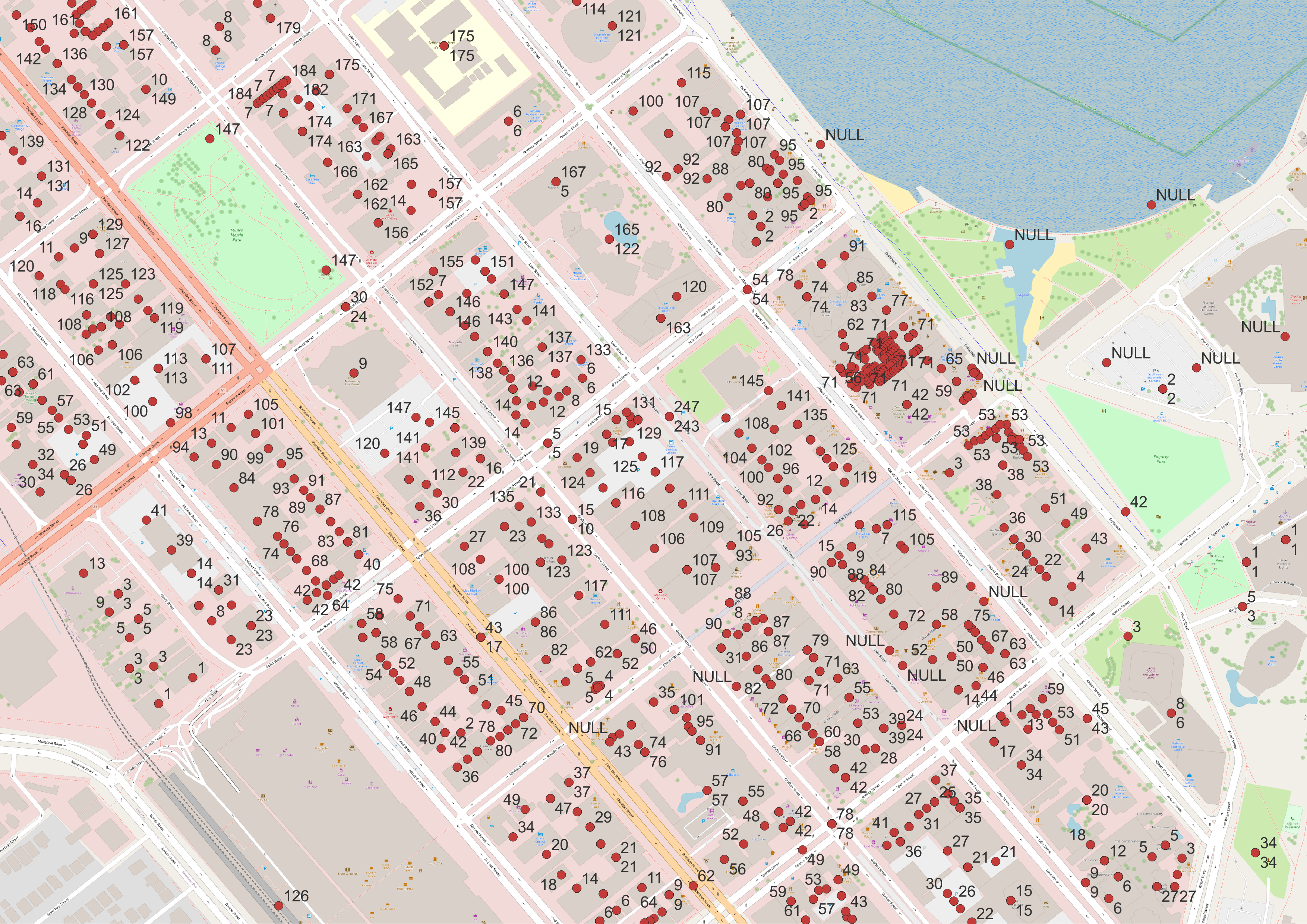 結果は複数行だが,経度,緯度の座標はすべて一致している.