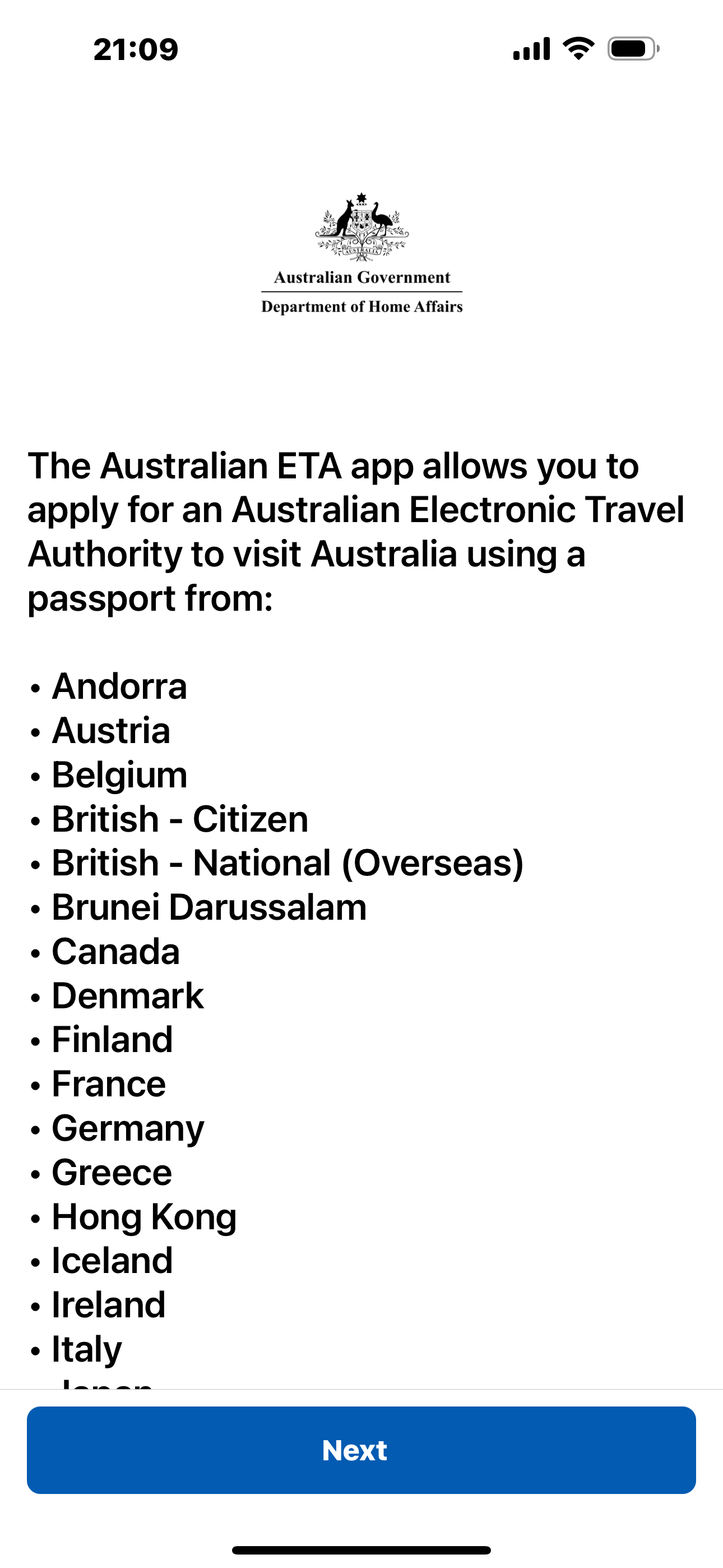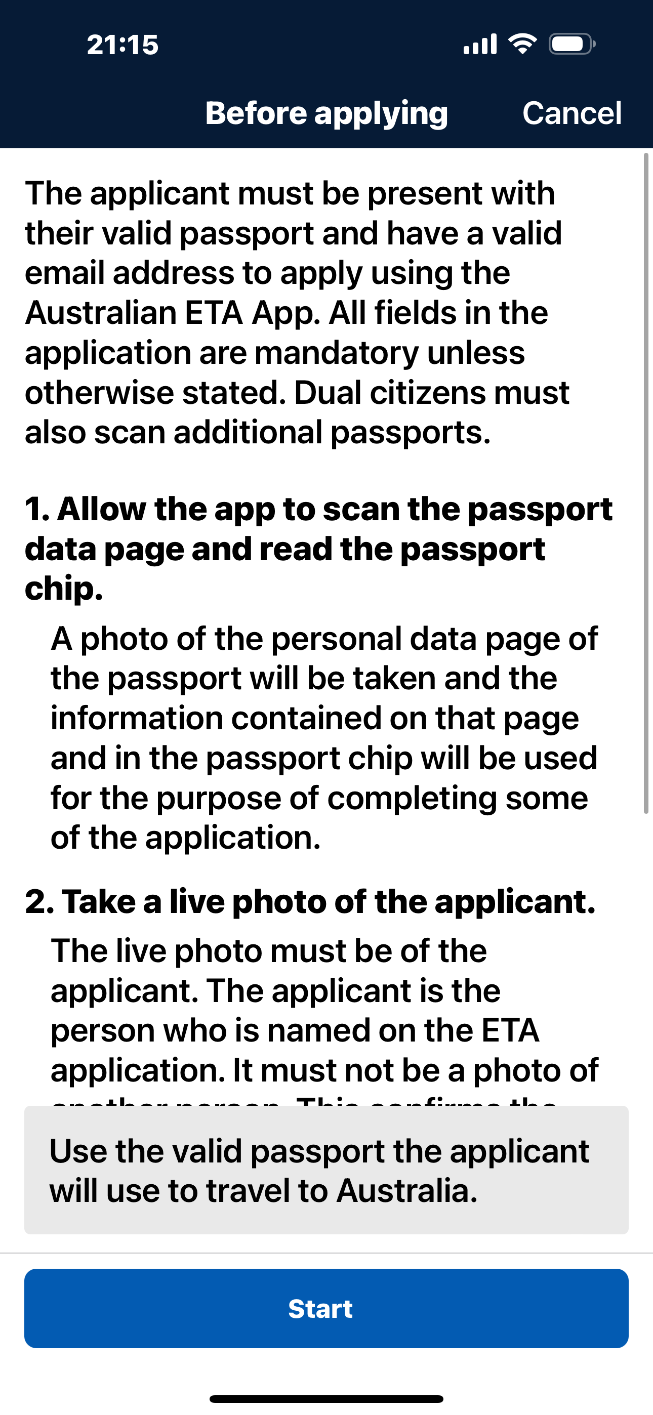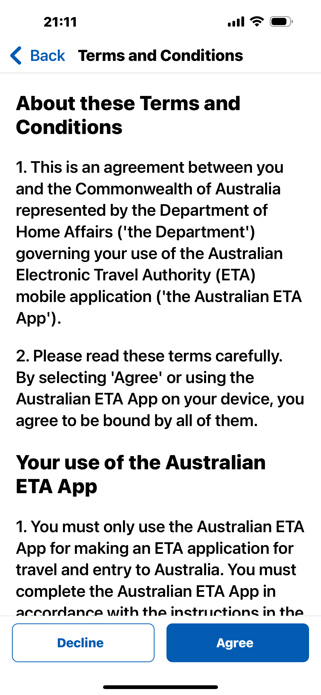 1. オーストラリアETAアプリは、オーストラリアへの渡航および入国のためのETA申請のみに使用してください。