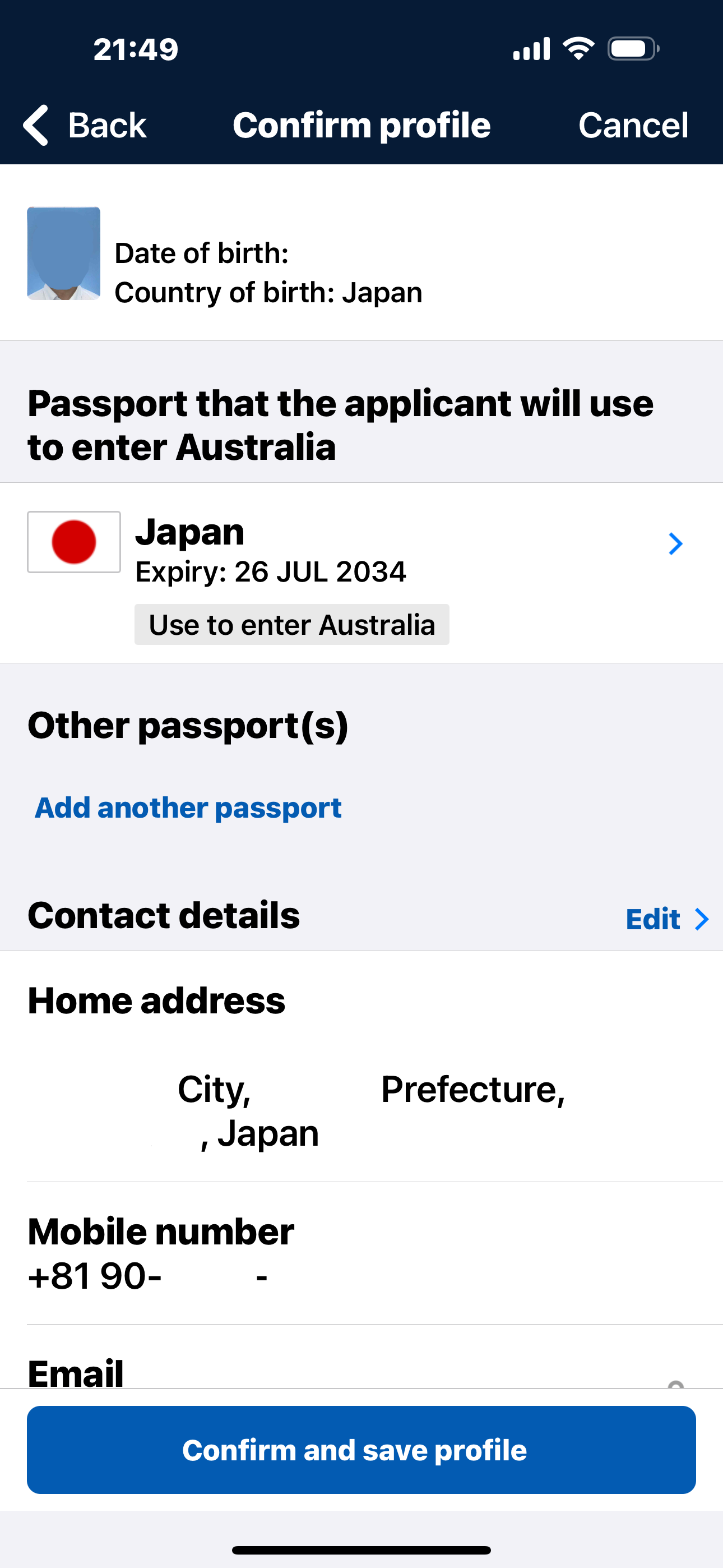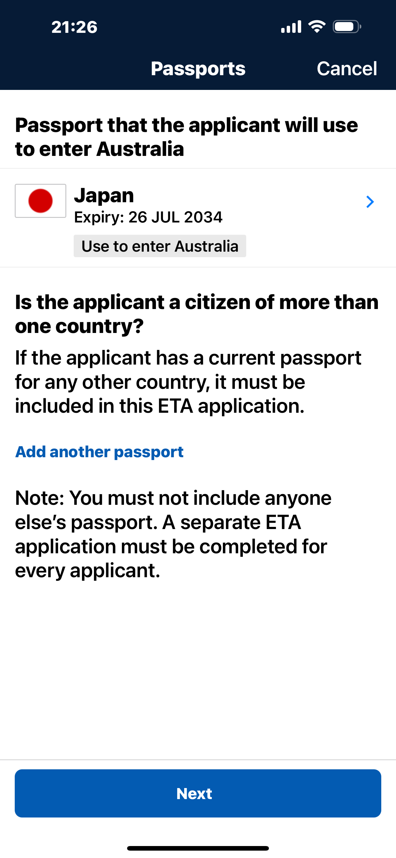 申請者が他の国のパスポートを所持している場合は、そのパスポートもこの ETA 申請に含める必要があります。
