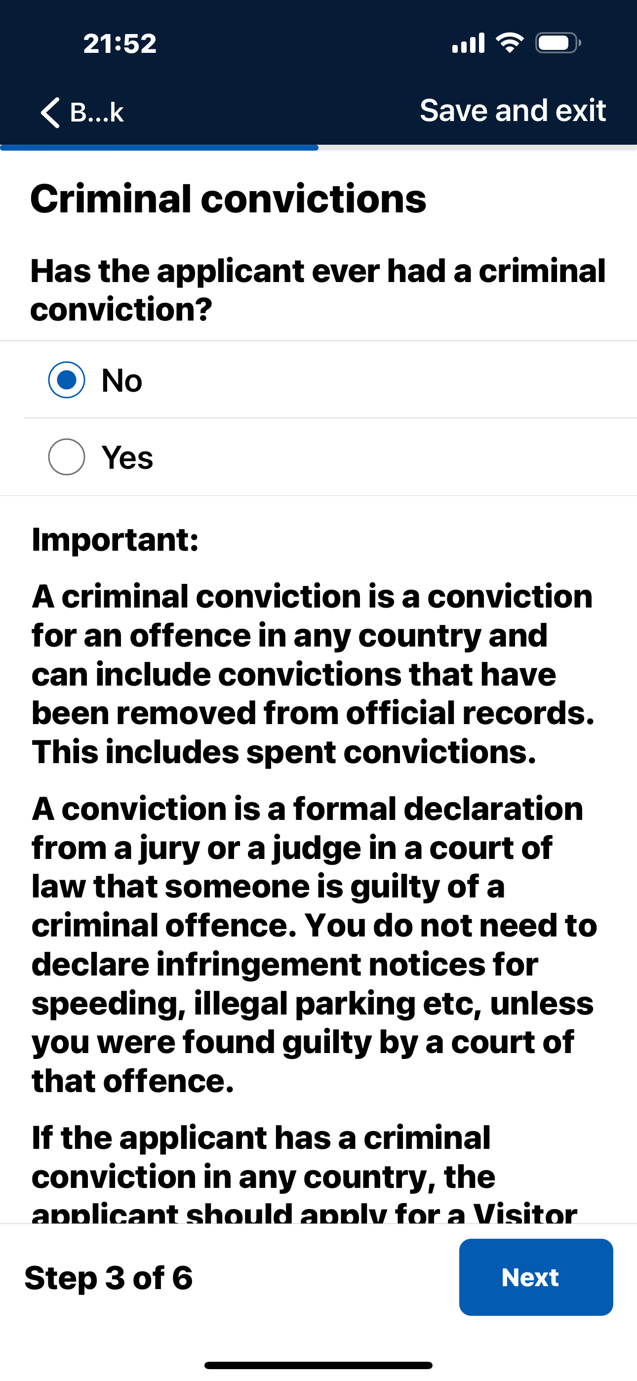 申請者はこれまでに刑事有罪判決を受けたことがありますか?