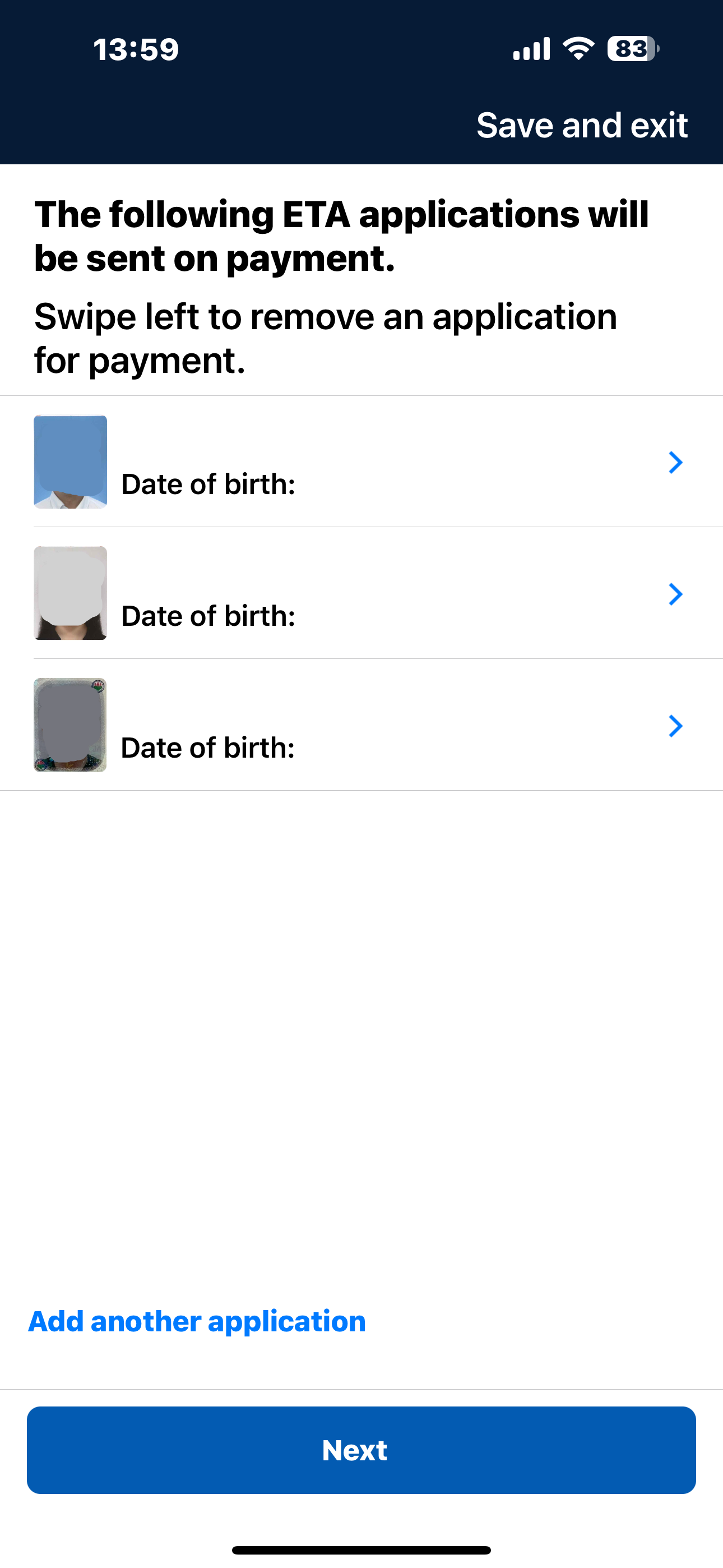 注: 他の人のパスポートを含めることはできません。申請者ごとに個別の ETA 申請を完了する必要があります。